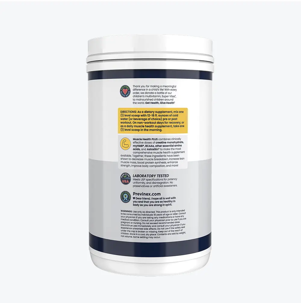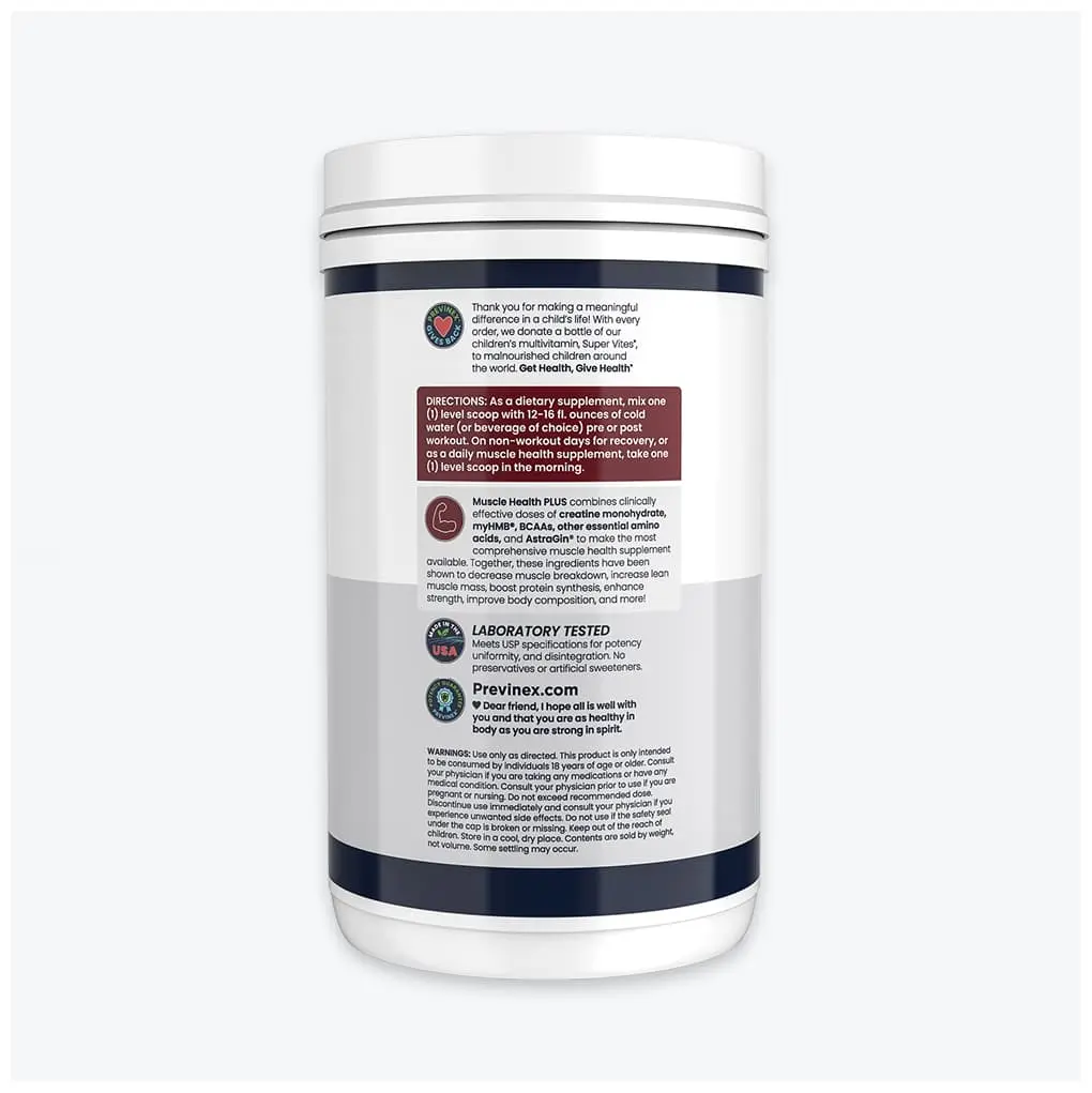 Muscle Health PLUS is a comprehensive formula designed to support muscle growth, strength, and recovery. Powered by clinically studied ingredients, it helps reduce muscle breakdown while promoting lean muscle development and enhanced performance.