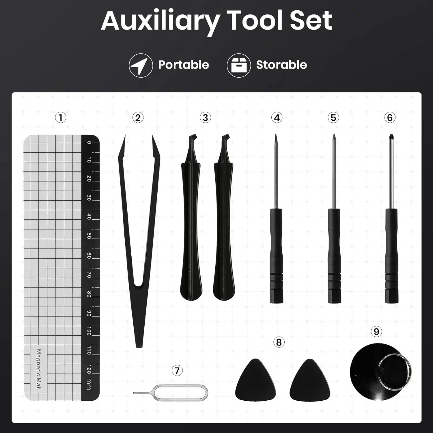 ·Auxiliary tools include crowbars, tweezers, suction cups, small screwdrivers, etc. These tools can help you carry out disassembly and installation work more conveniently.
