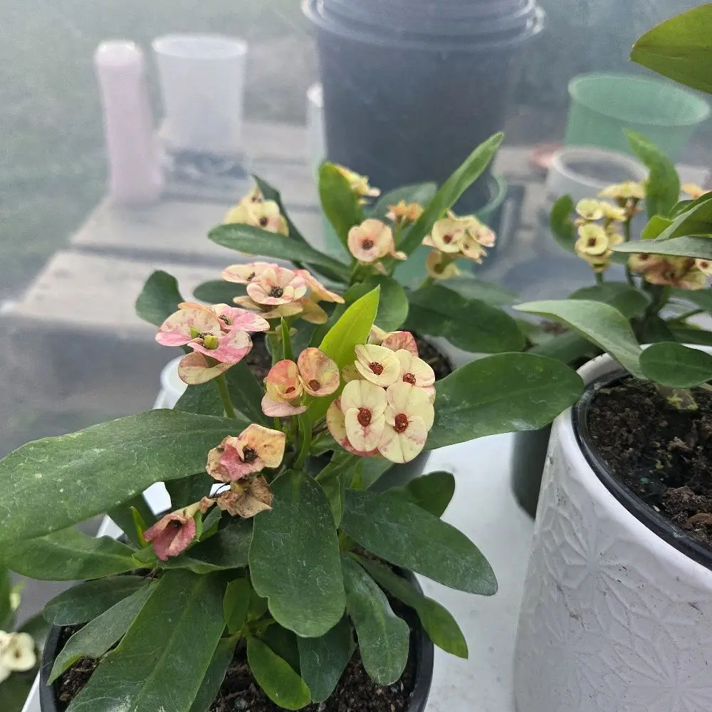 🌸 Corona de Cristo Pink Flowers in Pot with Green Leaves for Home Decor and Gardening 🌸
