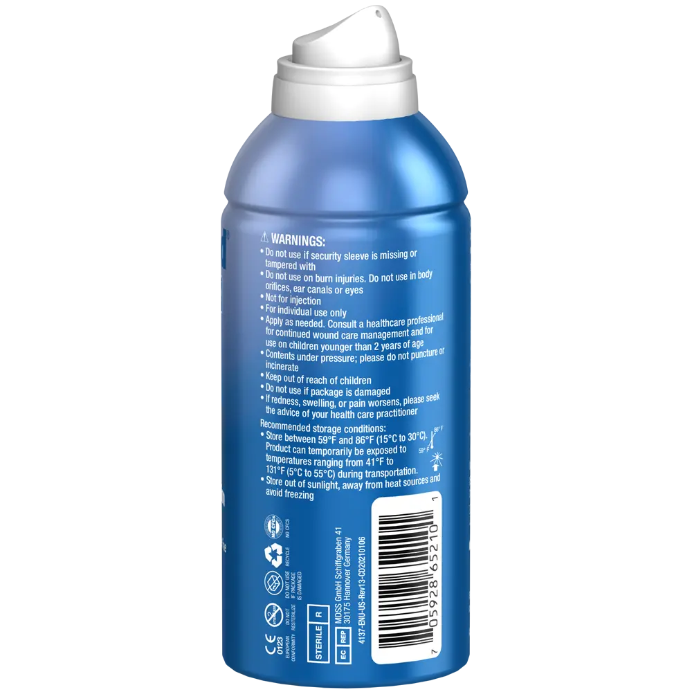 ·Before use, spray a short stream of Wound Wash Saline Spray™ in the air or on intact skin to test stream and to clear nozzle.