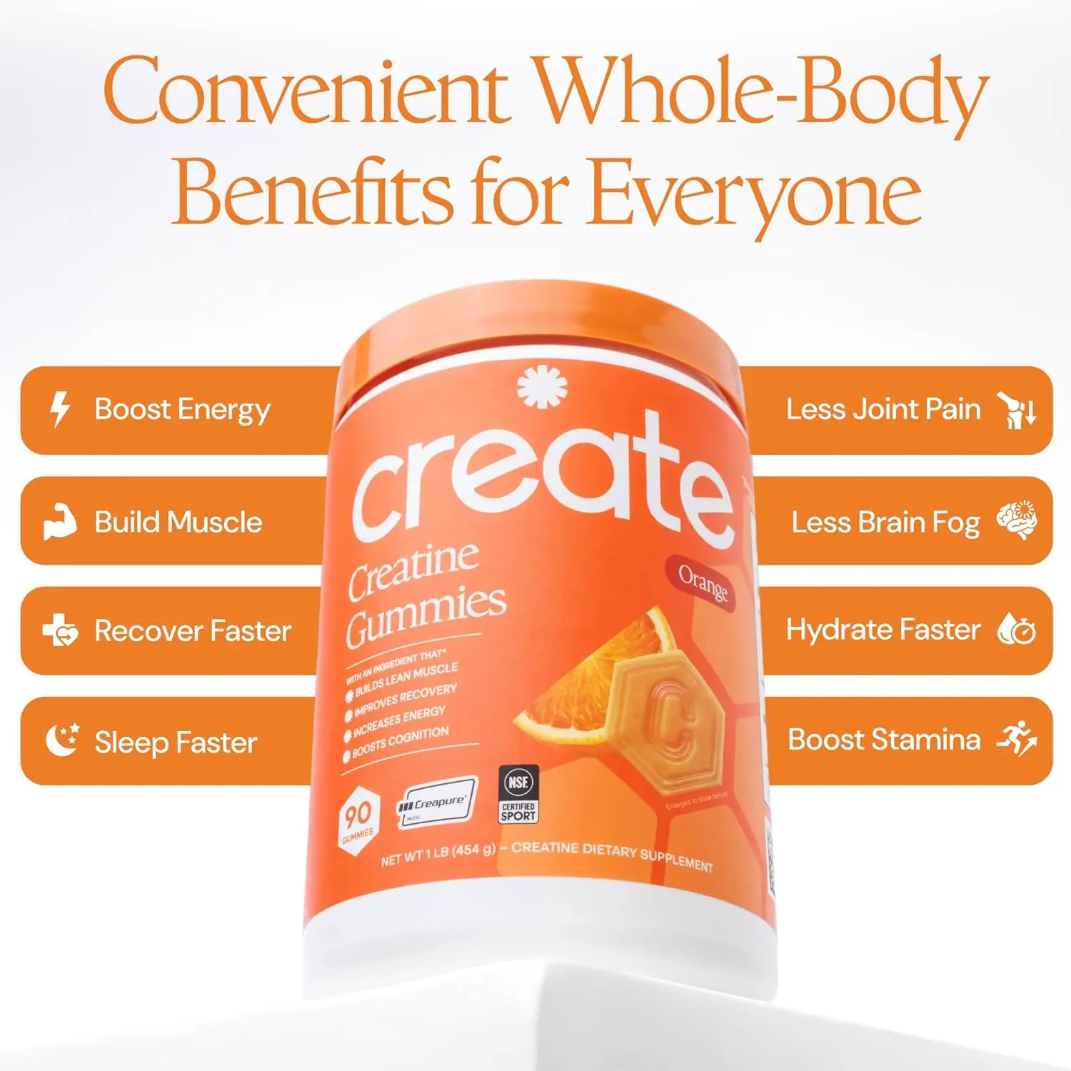Creatine Monohydrate Gummies for Men & Women, Boost Focus, Strength, and Endurance, Anti-Melting Formula, Vegan, Gluten-Free, Non-GMO, 1.5g of Creatine per Gummy (Orange)