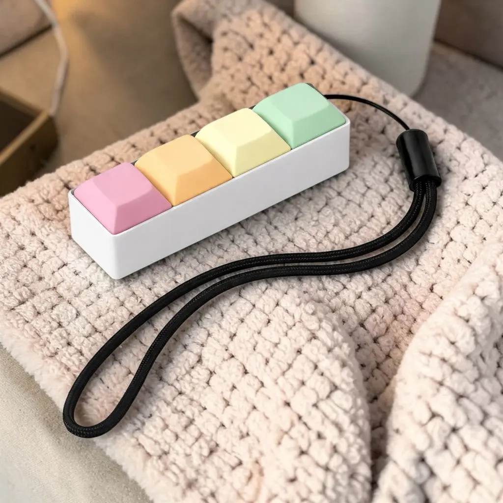 • Four satisfying clickable keys • Real mechanical keyboard switches • Crisp tactile feedback with every press • Compact and portable design • Durable 3D printed construction