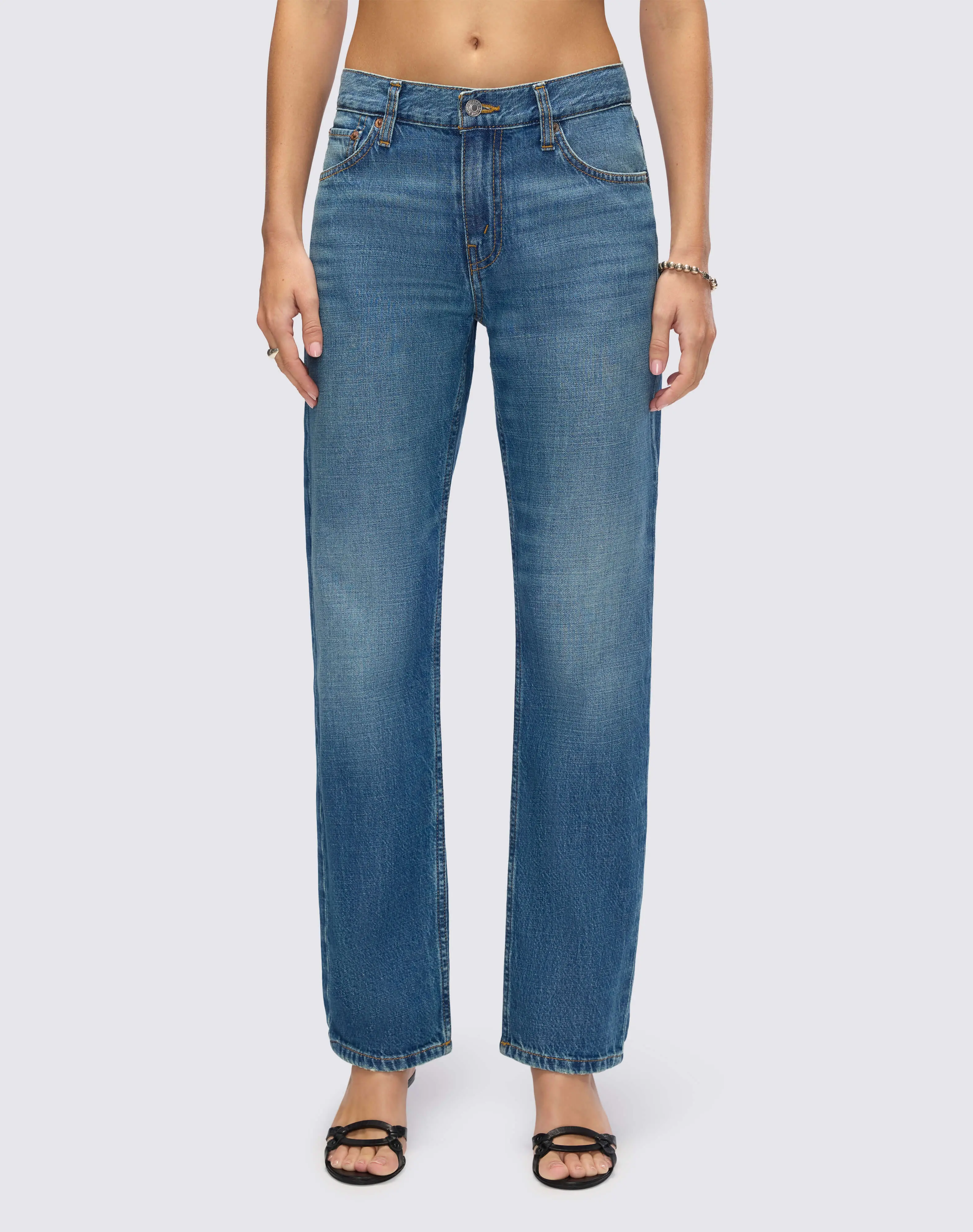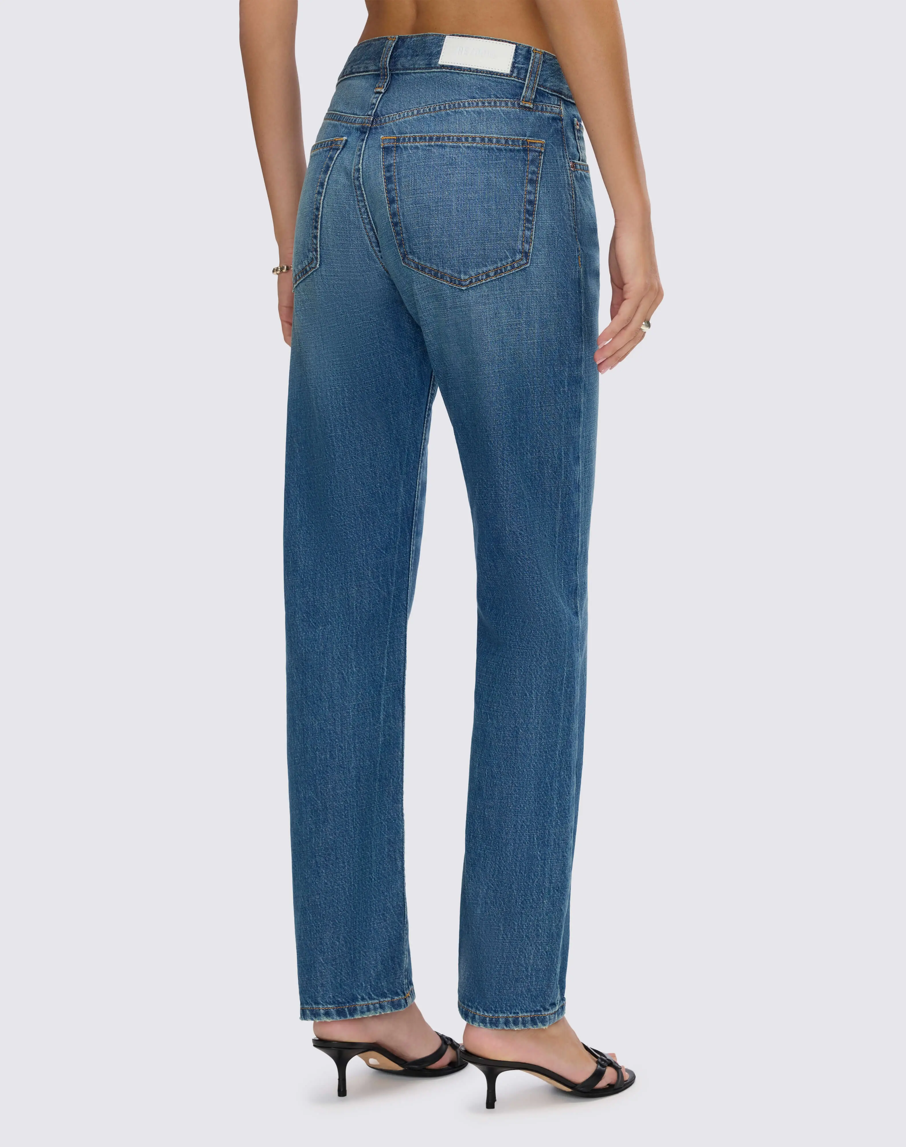 Fit: Mid-rise fit sitting between the natural waist and hip bones with an easy thigh and a straight leg opening. Cropped inseam with a finished hem.
