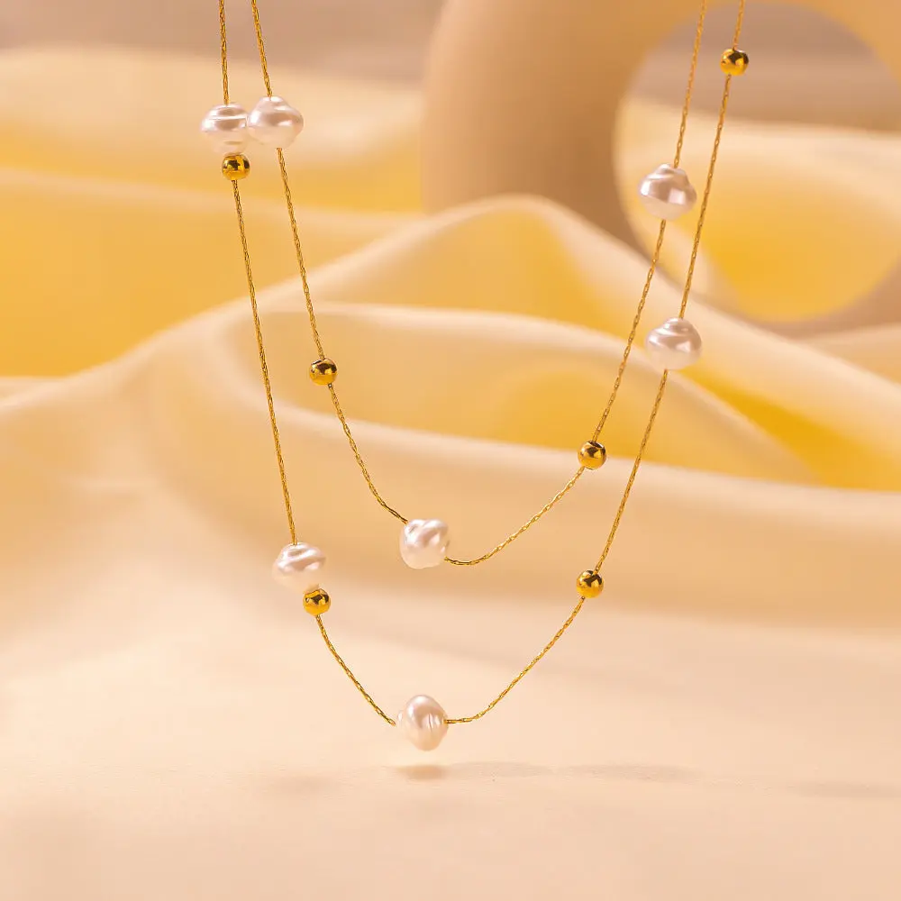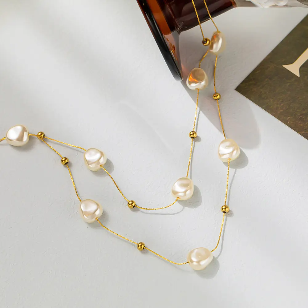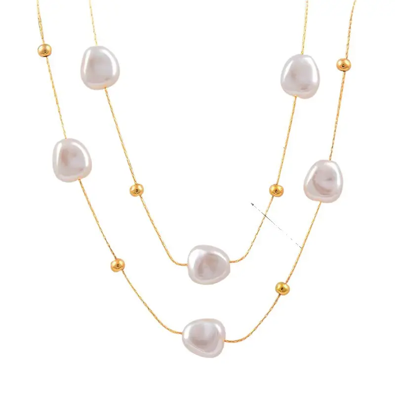 Product information: Processing Technology: Electroplating Color: [H1072] Irregular Bead Necklace, Gold; [H1073] Round Pearl Necklace, Gold; [H1074] Oval Pearl Necklace, Gold; [H1075] Square Pearl Necklace, Gold Applicable Audience: Women Pendant Material: Titanium Steel Chain Style: Clavicle Chain Material: Titanium Steel Design: Other Trendy Element: Pearls Style: Sweet Circumference: 31cm (inclusive) - 40cm (inclusive)