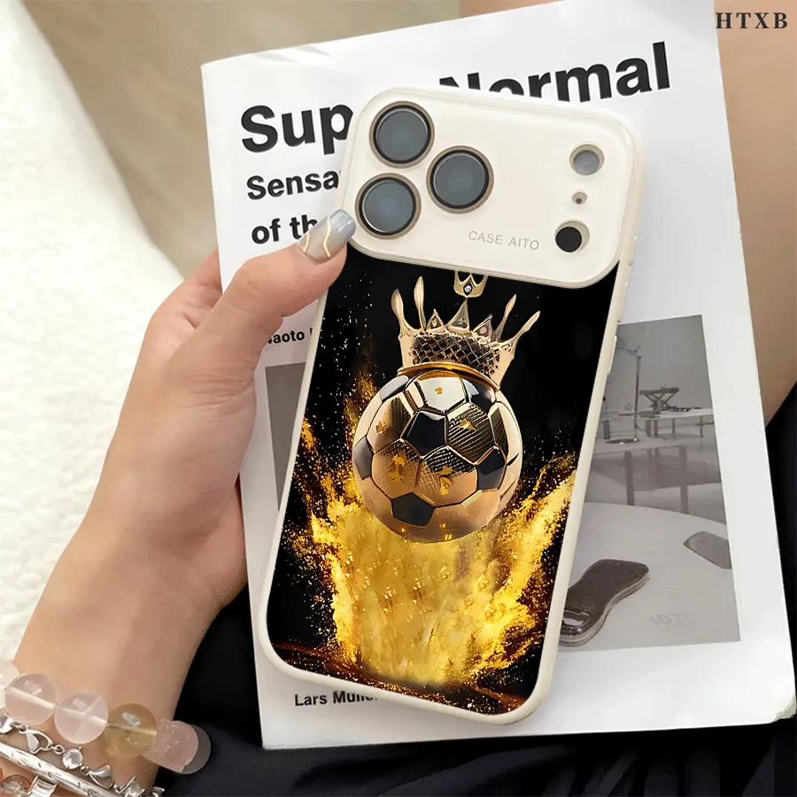 Golden Football Crown Phone Case for iPhone 17 Pro Max 17Air 17 16E 16 15 14 13 12, Ultra Skin-Friendly TPU, All-Inclusive Glass Lens Protection, Aesthetic Soccer Fans Gift, Trendy Dopamine Ins Style Cover, Shockproof Slim Case, Lens Window Design