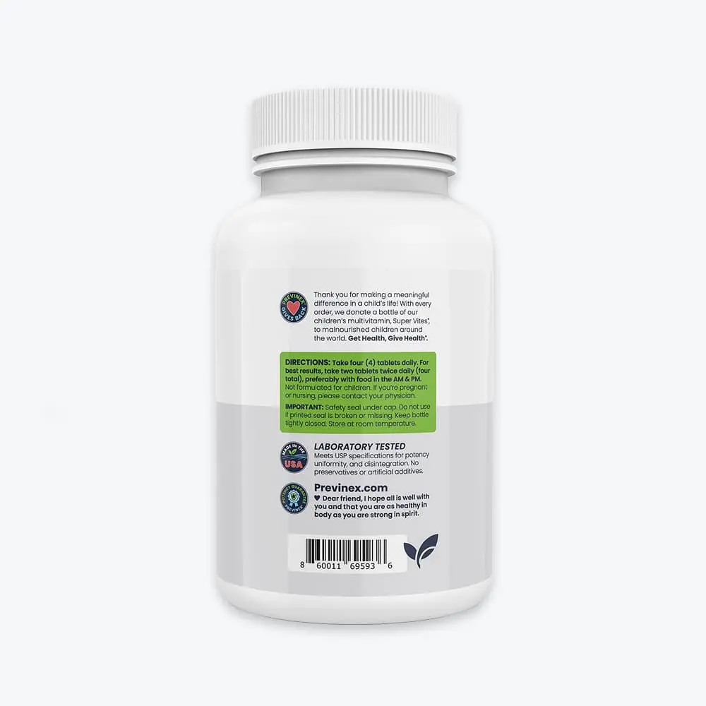 | Ingredients | Vitamin C,Vitamin E,Vitamin A,Vitamin K,Vitamin D,Thiamin,Riboflavin,Naicin,Vitamin B6,Folate,Vitamin B12,Biotin,Panothenic Acid,Calcium,Iodine,Magnesium Glycinate,Magnesium Ascorbate,Zinc,Selenium,Copper,Manhanses,Chromium,Molybdenum,Bioflavonid Complex,Inositol,N-Acetyl-L-Cysteine,Red Wine Grade Extract,Mixed Natural Tocopherols,Olive Leaf Extract,Coenzyme Q-10,Alpha-Lipoic Aicd,Silicon Dioxide,Lycopene,Boron,Trace Mineral Complex,Lutein & Zeaxanthin,Vanadium,Vitamin K2 |