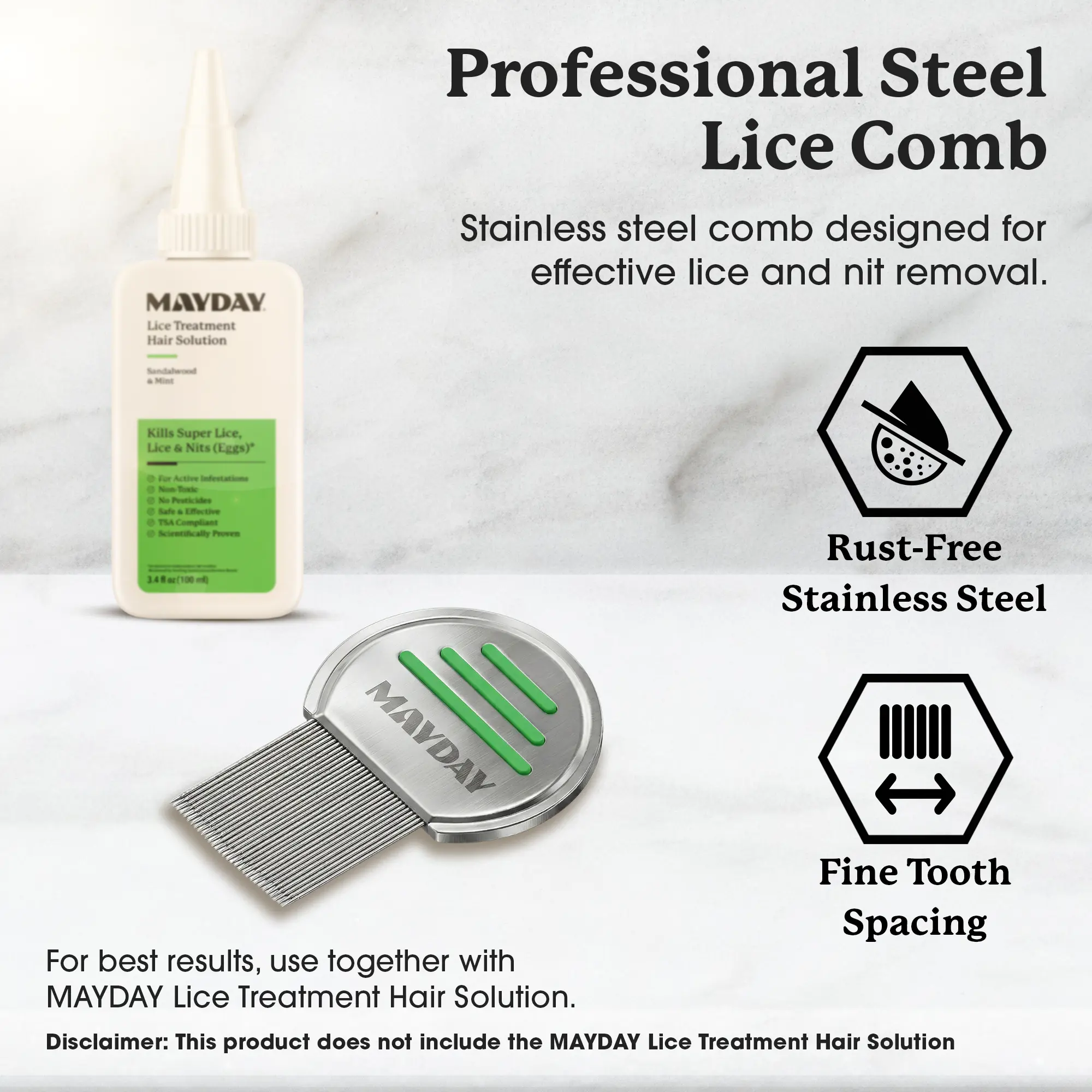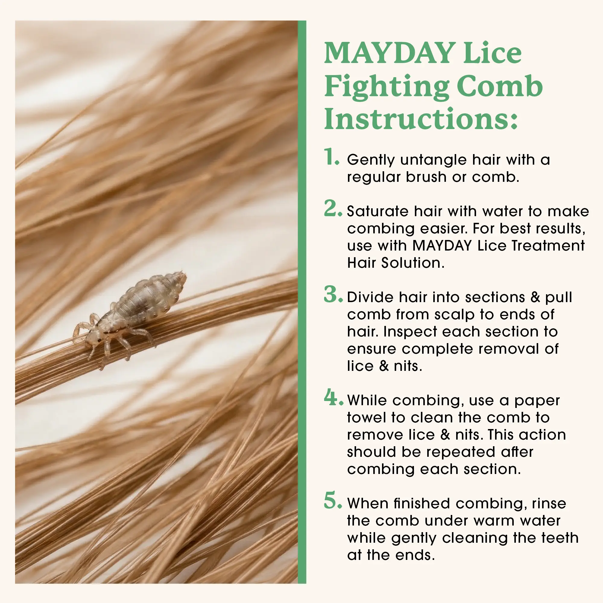 Say goodbye to lice and nits with the MAYDAY Lice Fighting Comb, a professional-grade tool designed for safe, effective, and reusable lice removal. Precision microgroove stainless steel teeth capture lice, super lice, and stubborn eggs while protecting the scalp from irritation. Rust-resistant and durable, it provides hygienic repeated use for children and adults alike. The ergonomic handle ensures easy, controlled section-by-section combing, making it ideal for all hair types. Perfect for home lice treatment, prevention routines, and pairing with lice shampoos for enhanced results. Keep your family’s hair clean, healthy, and lice-free with this reliable, high-quality lice comb.