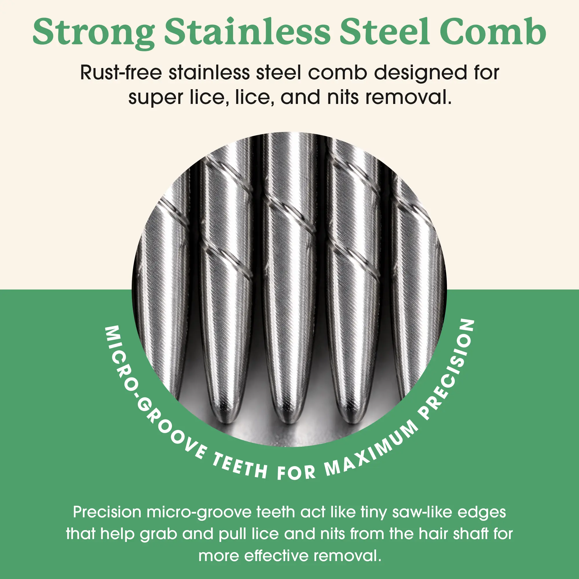 ·PRECISION MICROGROOVE NIT REMOVER TEETH: Fine stainless steel teeth grip and remove stubborn lice and nits with accuracy, making this comb a trusted tool for super lice and nit removal.