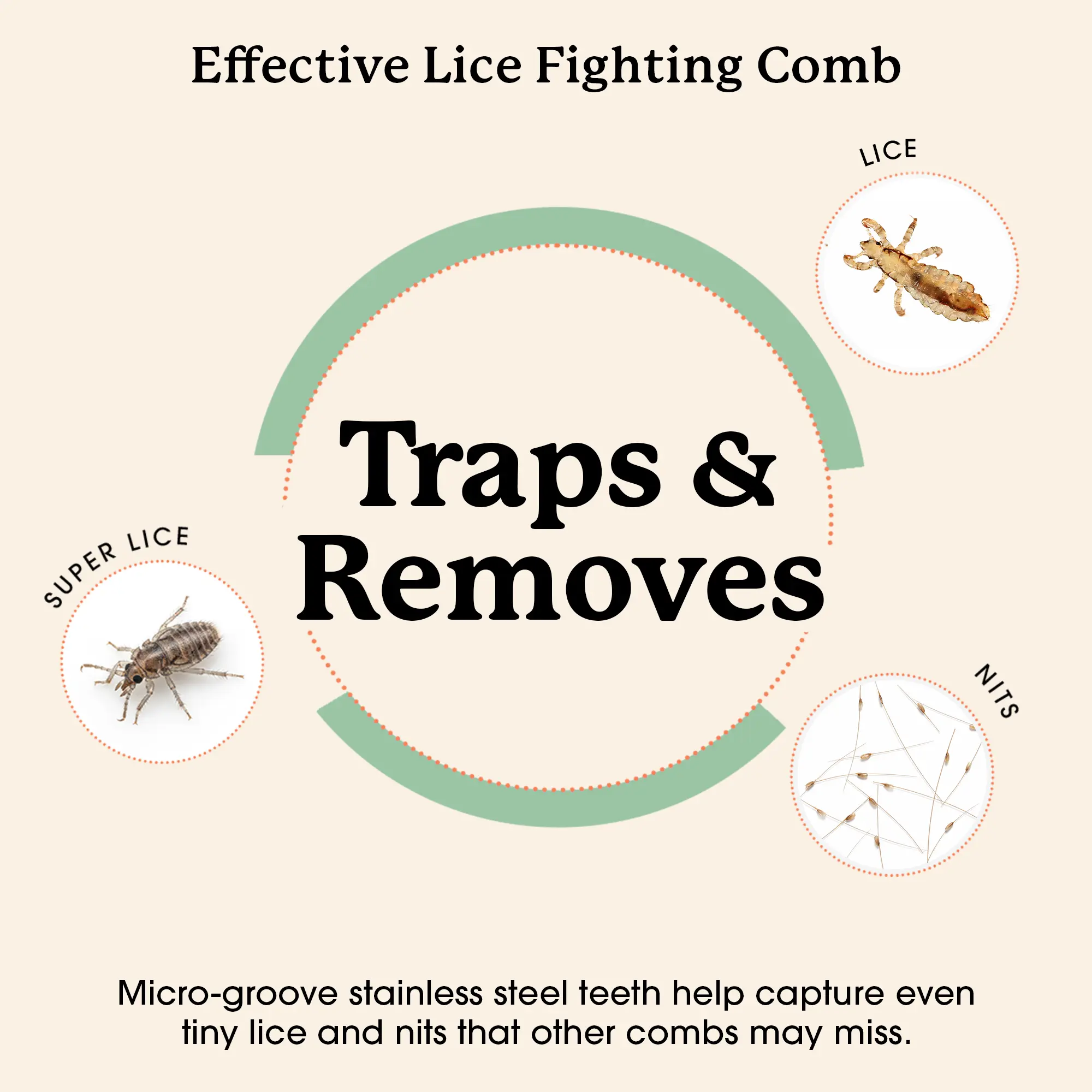 ·ERGONOMIC DESIGN FOR EASY COMBING: Comfortable handle allows controlled, section-by-section combing. Works on thick, thin, curly, or straight hair, perfect for kids, teens, and adults during lice removal routines.