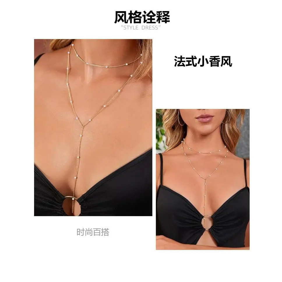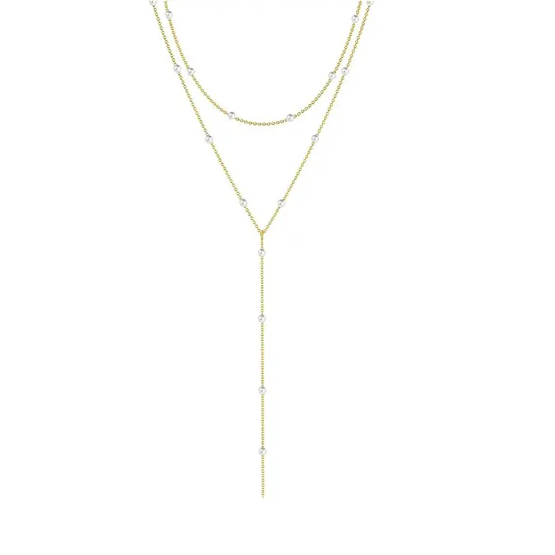 The new fashionable Y-shaped lasso necklace with a sense of design and zircon pendant with a simple and elegant look for women
