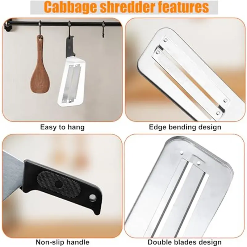 These 2-pack cabbage slicer shredders support efficient kitchen prep. They suit making coleslaw, sauerkraut, salads, and stir-fries. Crafted from stainless steel, the cabbage cutters handle cabbage, lettuce, and veggies effortlessly. They meet the needs of families and meal preppers, providing double convenience with two tools.