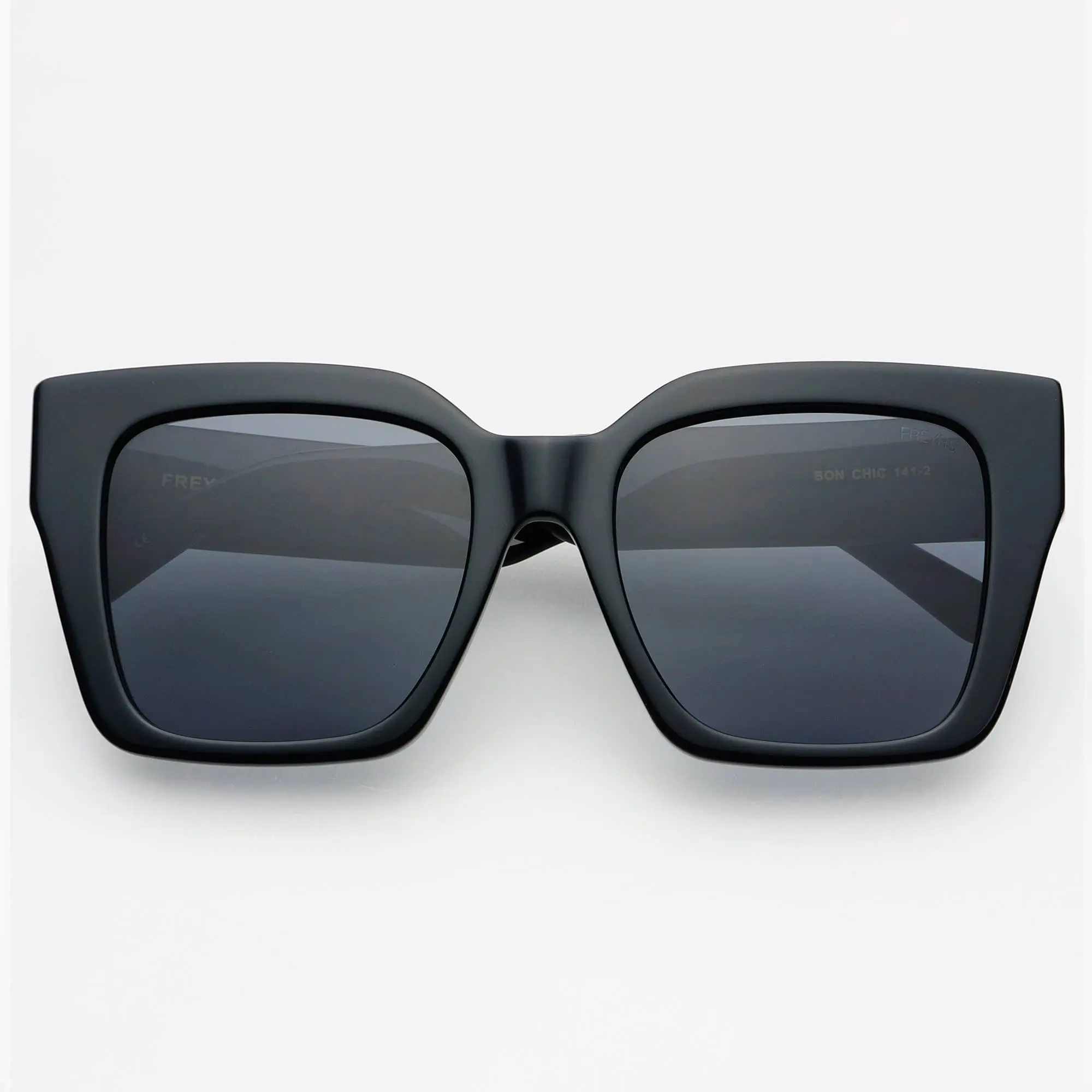 Bon Chic Acetate Oversized Square Sunglasses: Black