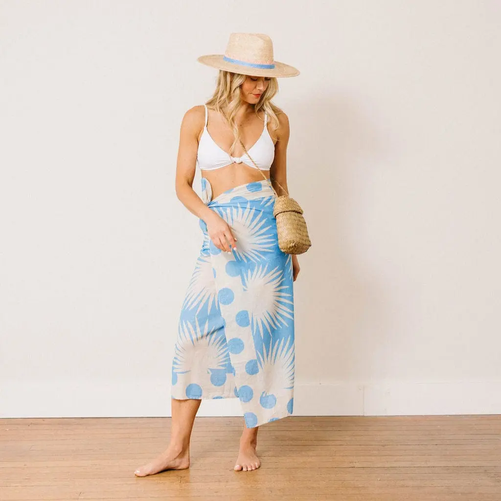 The Isabel Crochet Palm Hat features a blue and pink color-block cotton band with hand embroidered scalloped detail and is a part of our sustainable, fair trade hat collection and graded at the highest UPF rating.