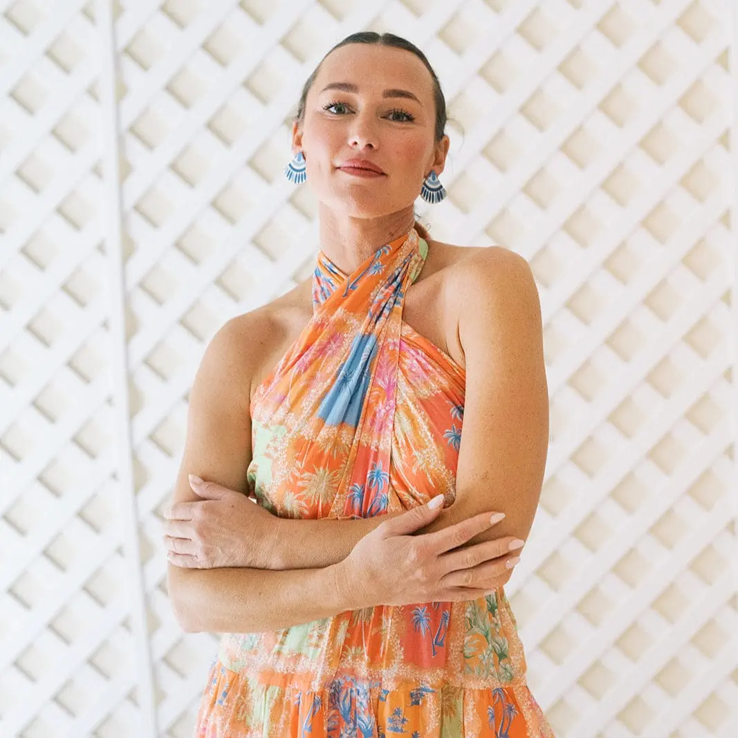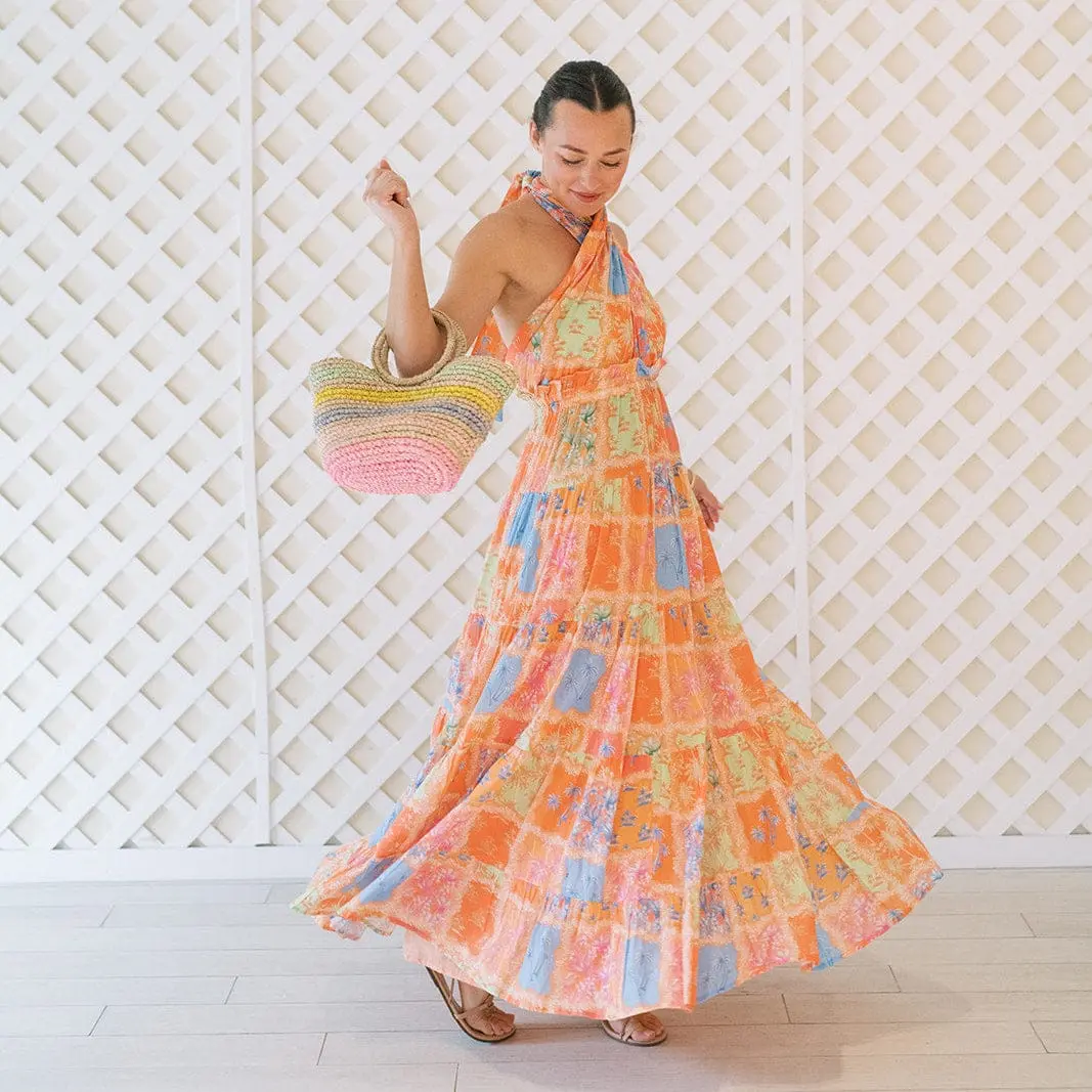 The ultimate vacation-ready maxi dress. The Capri Dress features a flattering halter neckline, smocked waist, and full-tiered skirt for a breezy, feminine fit. With its flowing silhouette and bold back-tie detail, this easy pull-on style is perfect for dressing up or down—whether you're headed to dinner by the sea or strolling through sunny streets.