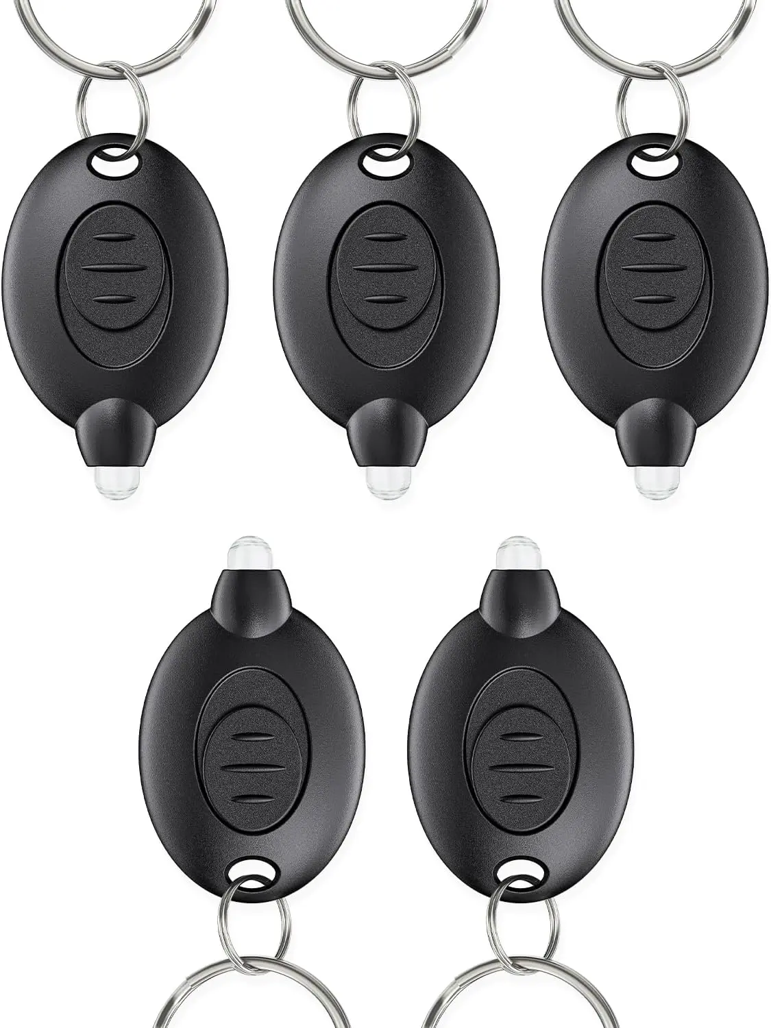 5 Pack LED Keychain Flashlight Mini LED Keychain Light 12 Lumen Portable Ultra Bright Battery Powered Key Ring Torch for Outdoor Camping Hiking and Emergency Lighting, Black Shell