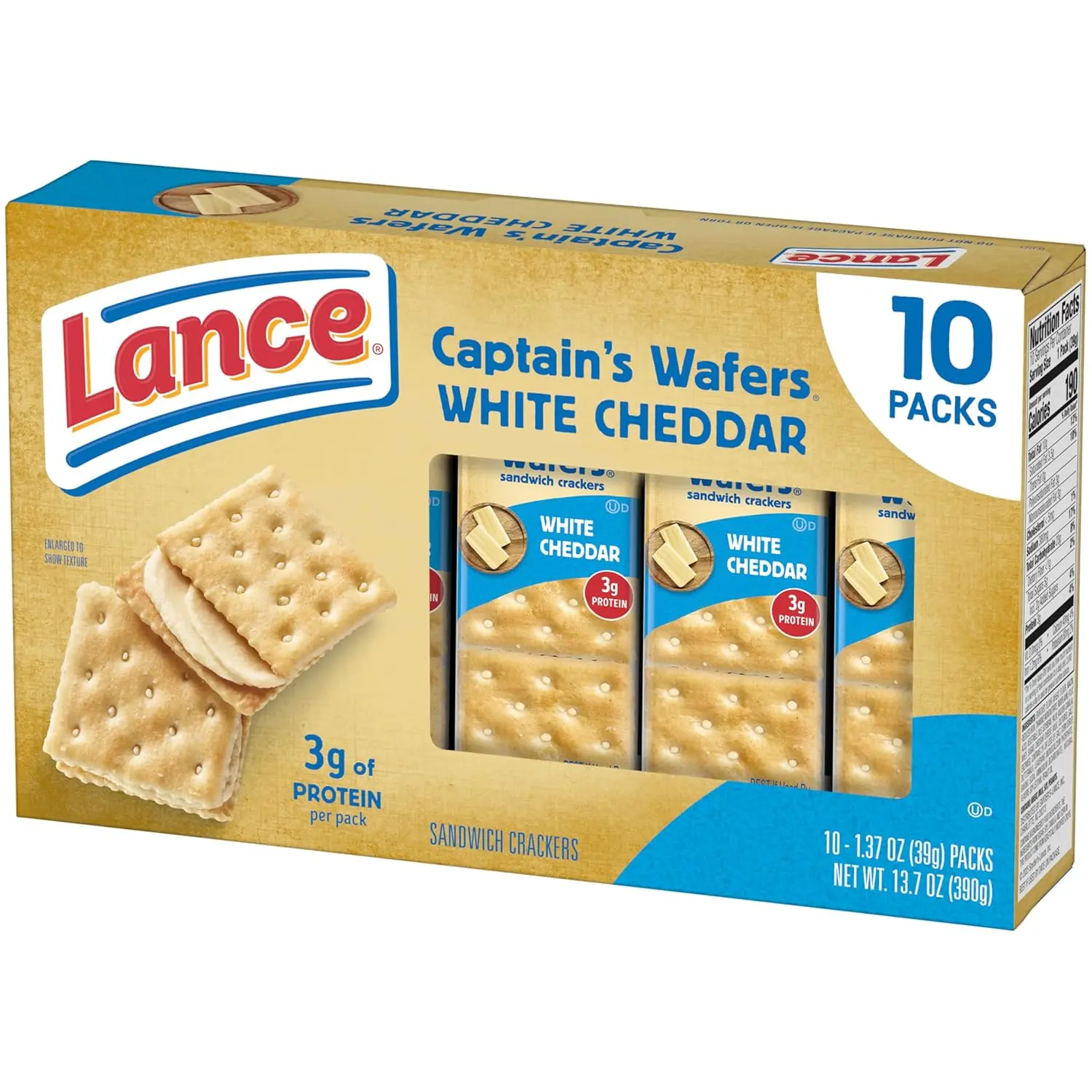 ·Get a delicious, full-flavored bite whenever the craving strikes. Lance Captain’s Wafers White Cheddar Crackers make a wonderful savory snack. They feature two of our classic Captain's Wafers with a real white cheddar cheese filling between for the full, rich flavor you crave. At Lance, sandwiches mean more: they aren’t just two somethings with whatever in the middle. A Lance sandwich is two awesomes with totally incredible in the middle — and we’ve made them that way for over 100 years. Of course, Lance Captain’s Wafers White Cheddar Cheese sandwich crackers are no different. Because every sandwich cracker means more, they’re made to taste incredible. These Captain’s Wafers crackers come in a convenient 10 count box, with 6 sandwich crackers per pack, making them ideal for lunch boxes or your on-the-go bags. So, the next time you’re ready to take a moment or need a quick pick-me-up, make it your one and only Lance sandwich crackers, the king of all sandwich crackers. Bring it!
