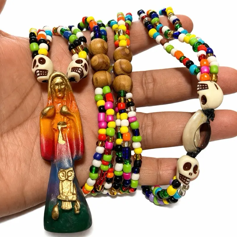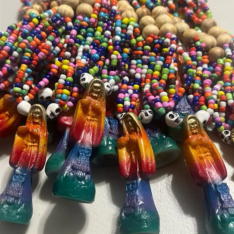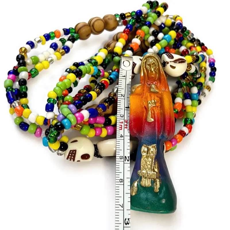 Santa Muerte 20 Inches 7 Powers Necklace 3 Inches Pendant Colorful Beads and Unique Design