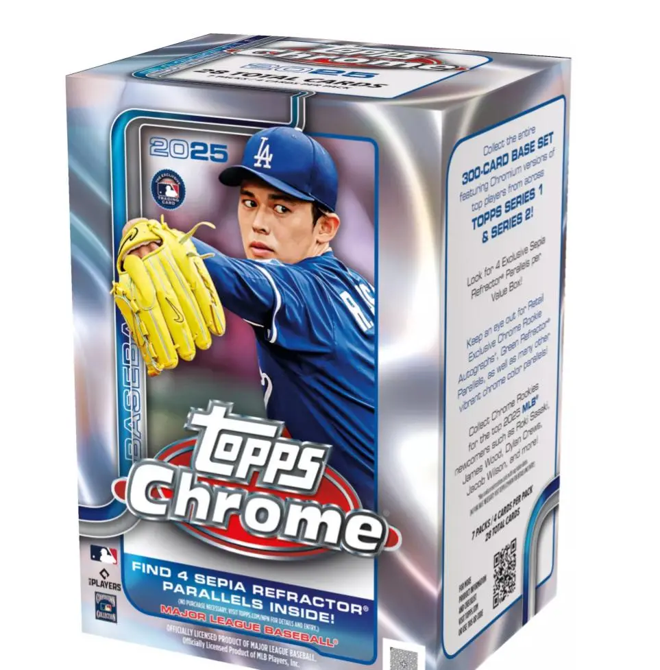 Dive into the world of baseball with the 2025 Topps CHROME Baseball Blaster Box. This box promises an exciting collection of cards for any fan. Perfect for collectors and enthusiasts, it's a must-have for your collection.