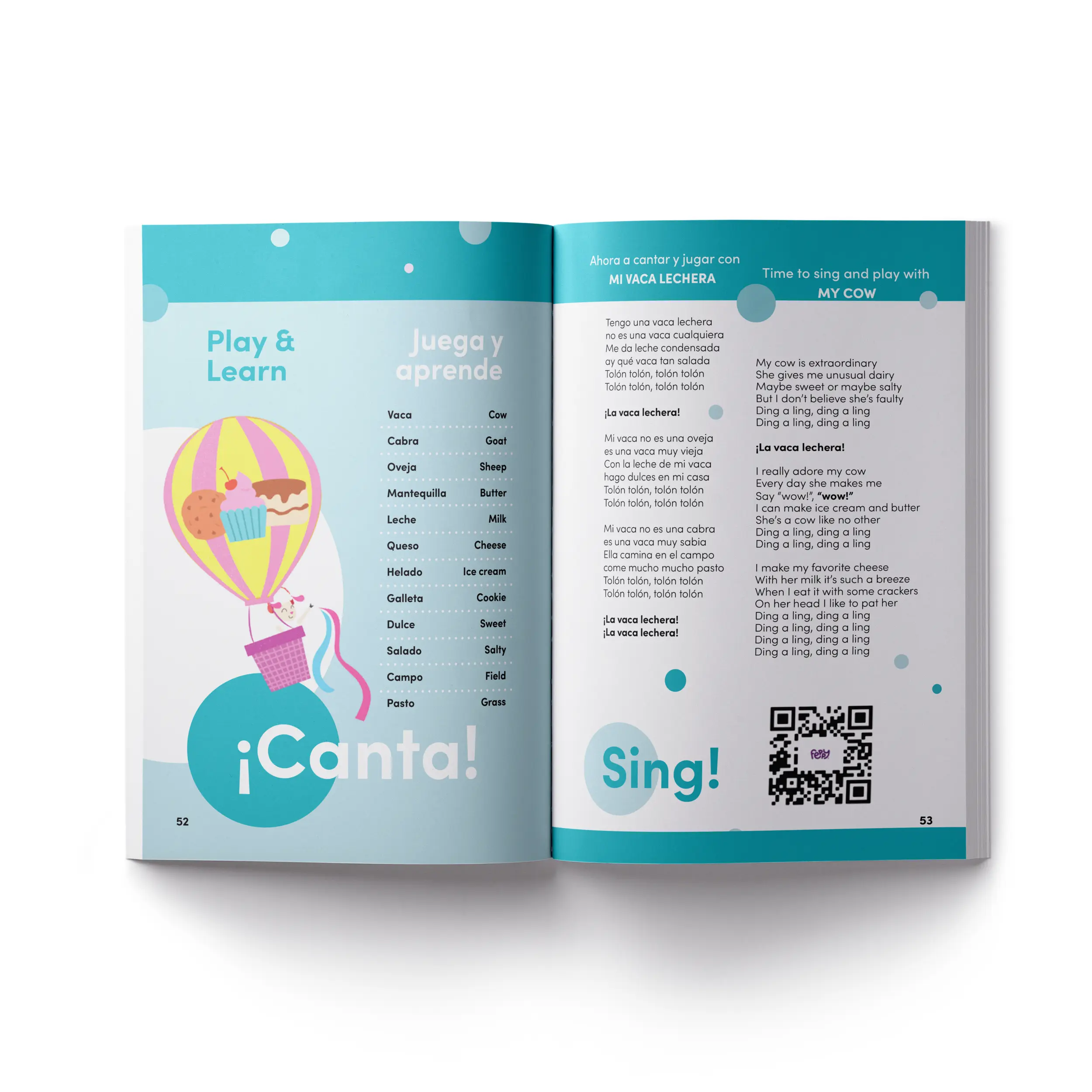 A beautifully illustrated original Feppy story in Spanish and English side by side. As three dairy friends — a cow, a goat, and a sheep — compete to create the ultimate dessert, kids naturally absorb food vocabulary, dairy-themed language, and everyday words in both languages. A story that sparks conversations about creativity, teamwork, and Latin culinary culture.