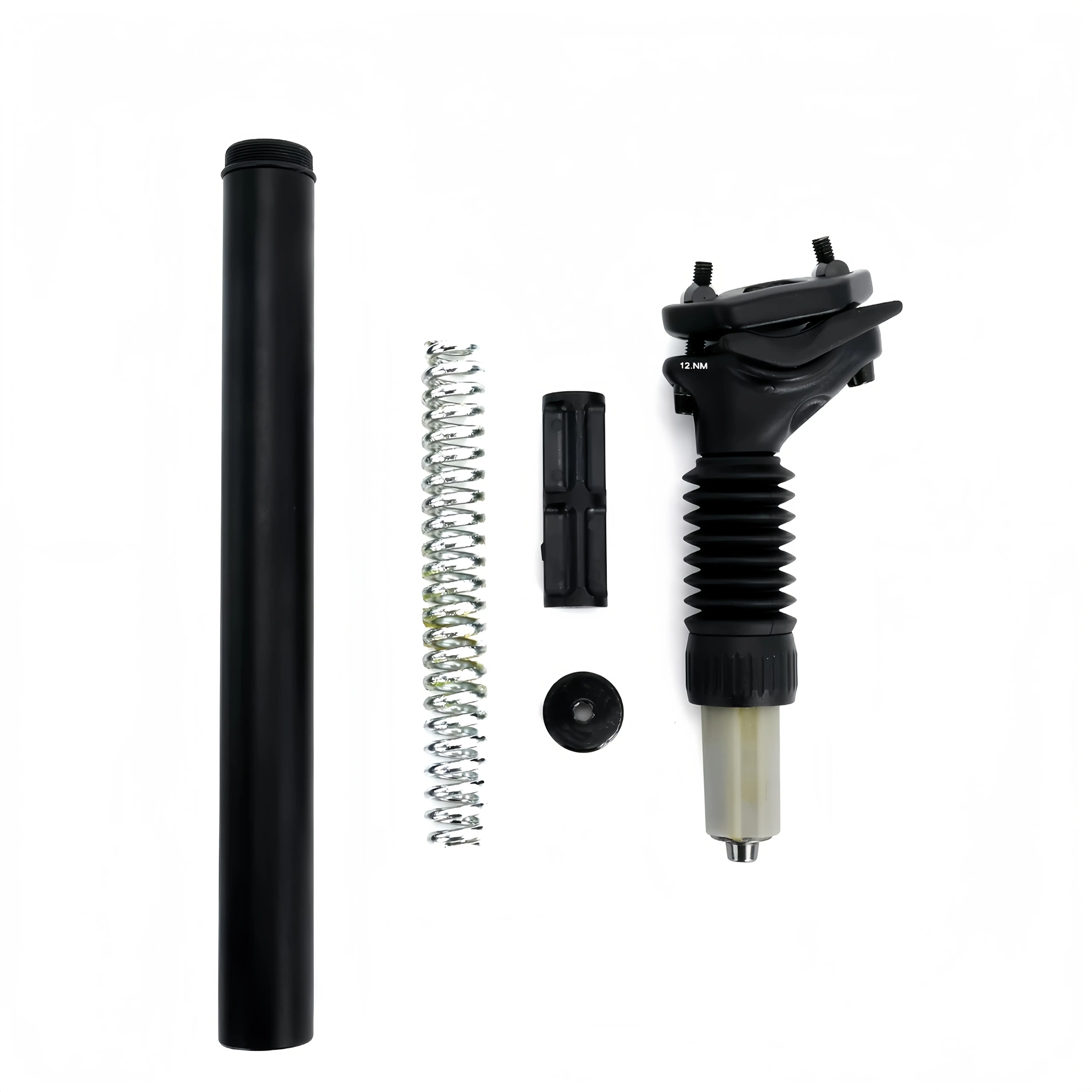 Enhance your ride with this mountain bike shock-absorbing seat tube. It features spring shock absorption, allowing you to adjust the hardness and softness. The shock absorption area is fully covered, ensuring a smooth ride. The adjustable angle provides flexibility. Made of aluminum alloy, it's a durable bicycle accessory.