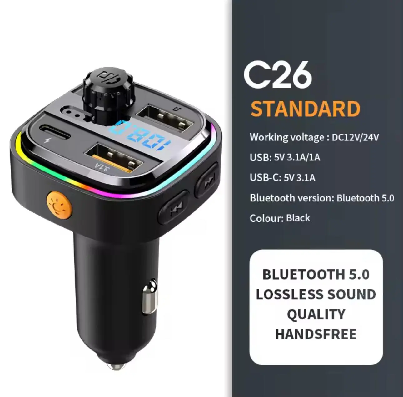 Newest C26 Bluetooth 5.0 FM Transmitter Handsfree Car Radio Modulator MP3 Player USB Super Quick Charge Adapter Car Accessories