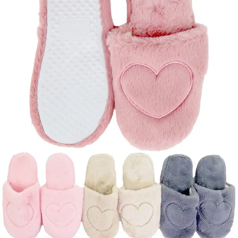 Big Heart Embroidered Fuzzy Sherpa Lounge Slippers
