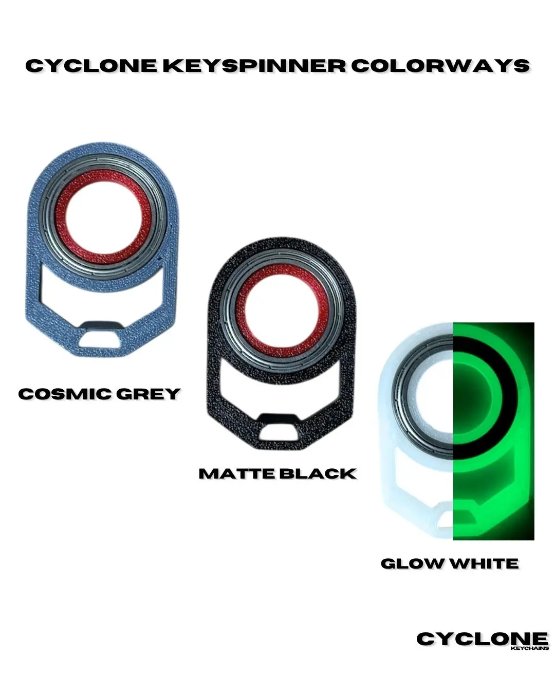 Keep your keys organized and your hands entertained with the Cyclone Key Spinner. Made in the USA from durable PLA plastic and smooth stainless steel ball bearings, it spins effortlessly for a satisfying fidget experience. Attaches easily to any keychain and features a built-in bottle opener for added practicality. Durable, fun, and functional—your keys will never be boring again.