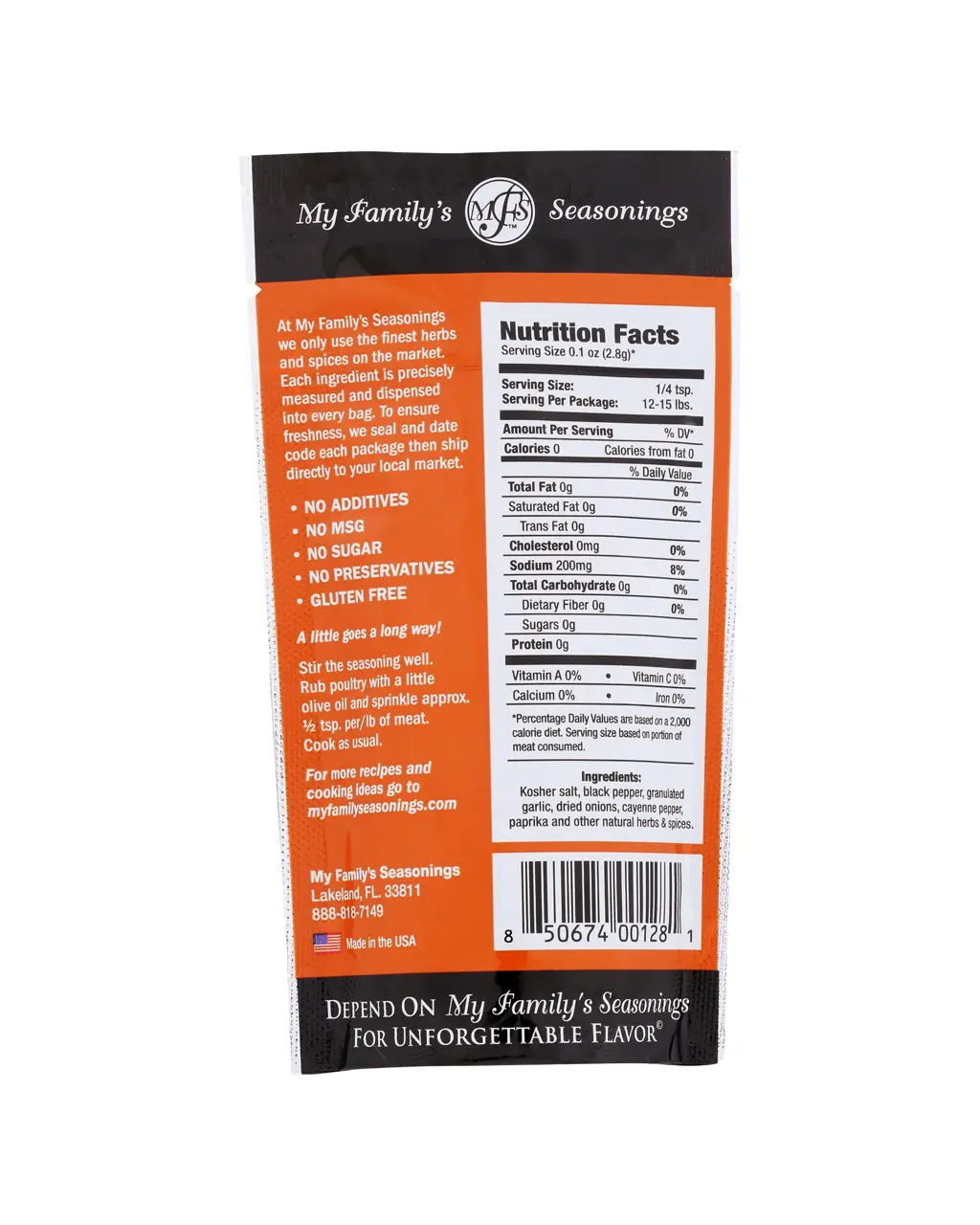 Made with kosher salt, black pepper, garlic, onion, and a signature blend of herbs and spices.