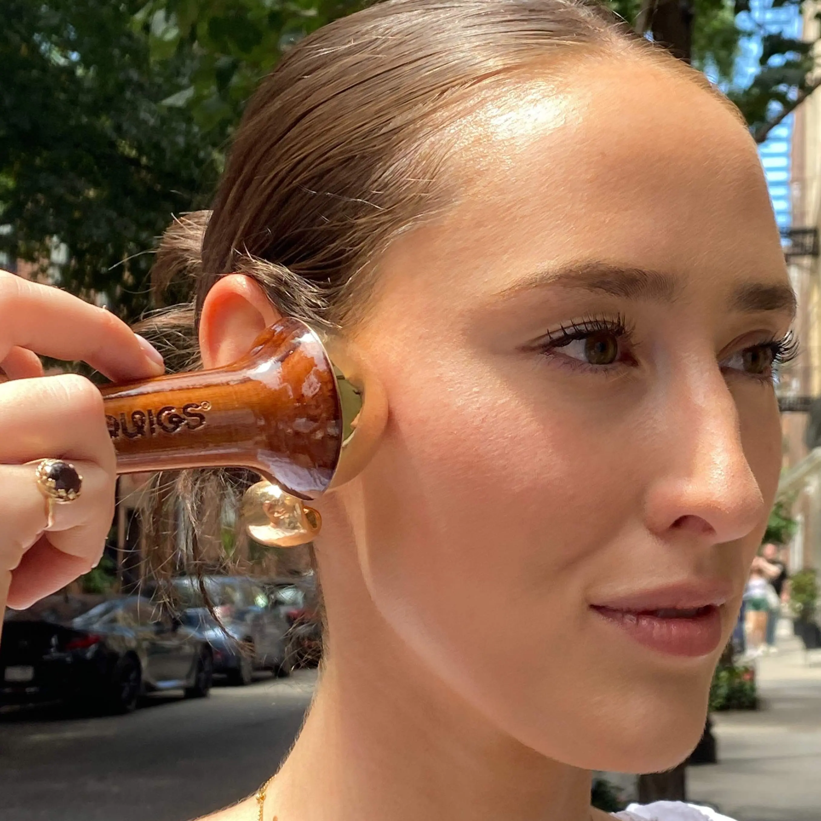 A revitalizing Ayurvedic facial massage tool made from a sacred mix of copper and tin metals created for all skin types that helps detoxify, lift, and tone your skin. It helps boost collagen production, reduce puffiness, and promote circulation for firmer, more toned skin.
