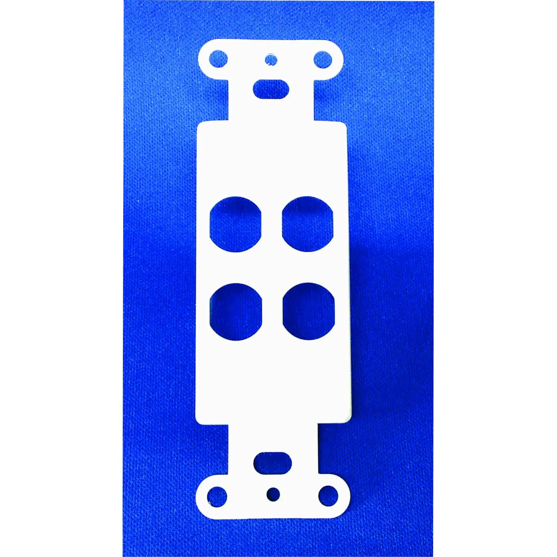 These blank decorator style wall plates are ideal for all residential audio/video and IT installations where customizing wall connections are necessary. Empty plates can be filled with a variety of connectors including RCA, F TYPE, and BANANA modular plugs (P) along with RJ11 & RJ45 keystone inserts (RJ) and a D style plate for pro audio type connectors (such as XLR). Plugs and inserts are available in a variety of colors for easy identification.