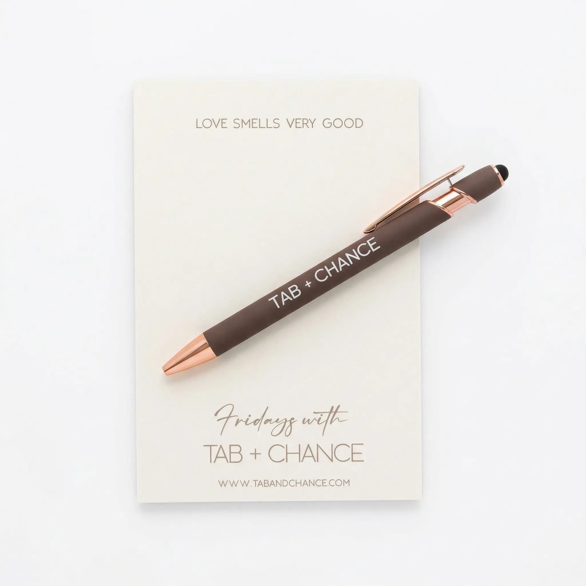 The fragrances are built on love, and are individually exceptional, but when they mix OOOH it's a very good experience. We just can't get enough of these delicious scents. For a limited time get our Love Smell's good love note pad and Tab + Chance custom Pen.