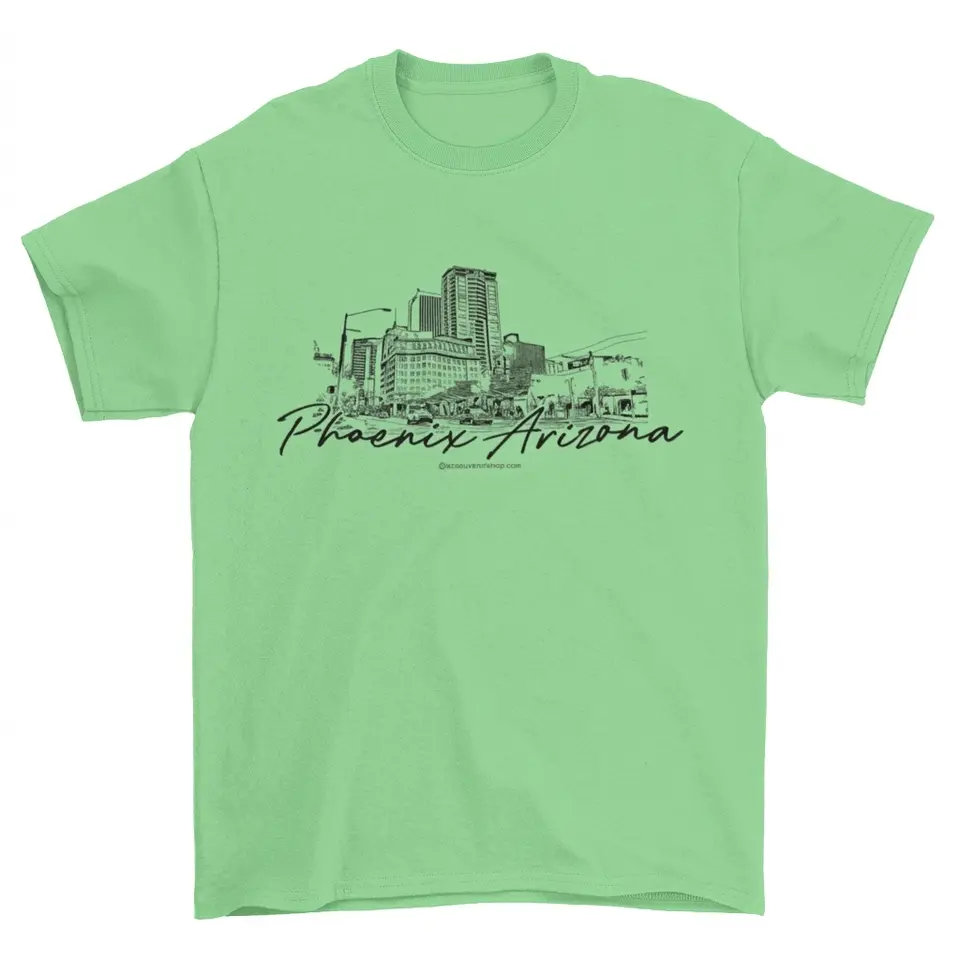 Show your Arizona pride with the AZ-SP-036 Phoenix Arizona Skyline Sketch! Printed on a Gildan Softstyle unisex t-shirt ā soft, lightweight, and perfect for everyday wear. Available in 7 colors and sizes Sā5XL.