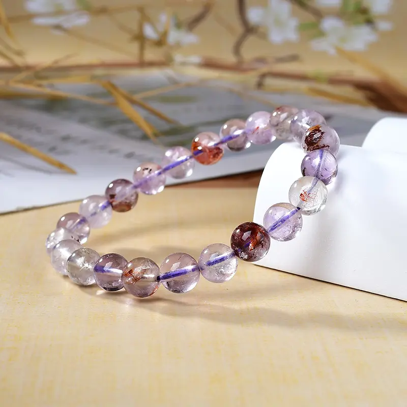 Amethyst Phantom Quartz Bracelet, Spiritual Growth & Manifestation Crystal