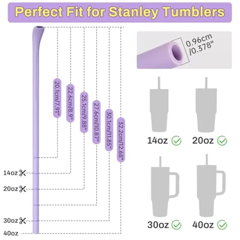The straw initially fits a 40oz Stanley water bottle. A cutting ring allows easy adjustment for various cup sizes. Personalize the length to suit your needs. This flexibility ensures a perfect fit for any cup, making it a versatile choice for all your drinking occasions.