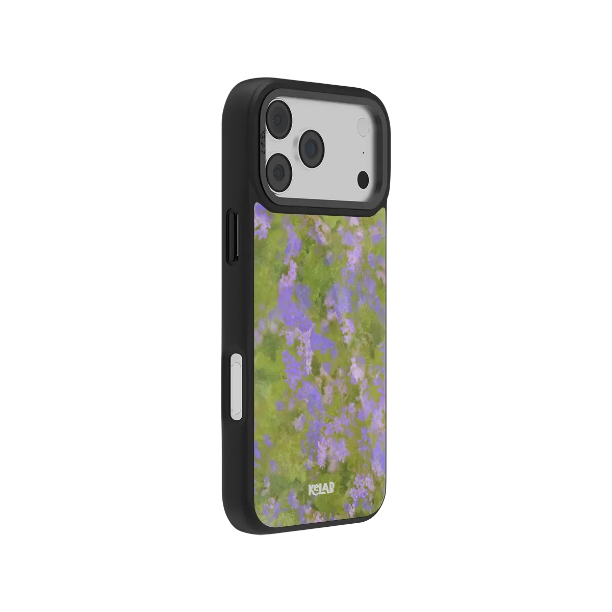 The Lavender Bloom | Purple Wildflower Case features a lush, multi-tonal foundation of sage and mossy greens, rendered with a soft, painterly texture that mimics an afternoon in a sun-drenched meadow. Scattered across this organic landscape are delicate clusters of lavender-purple wildflowers, their petals softened by a gentle, hazy finish that feels like a memory. The intentional blend of atmospheric depth and quiet botanical detail creates a design that is both romantic and modern, offering a curated look that is full of imaginative charm.
