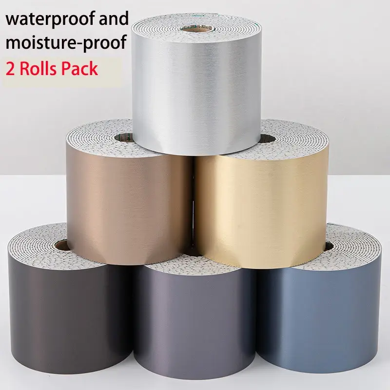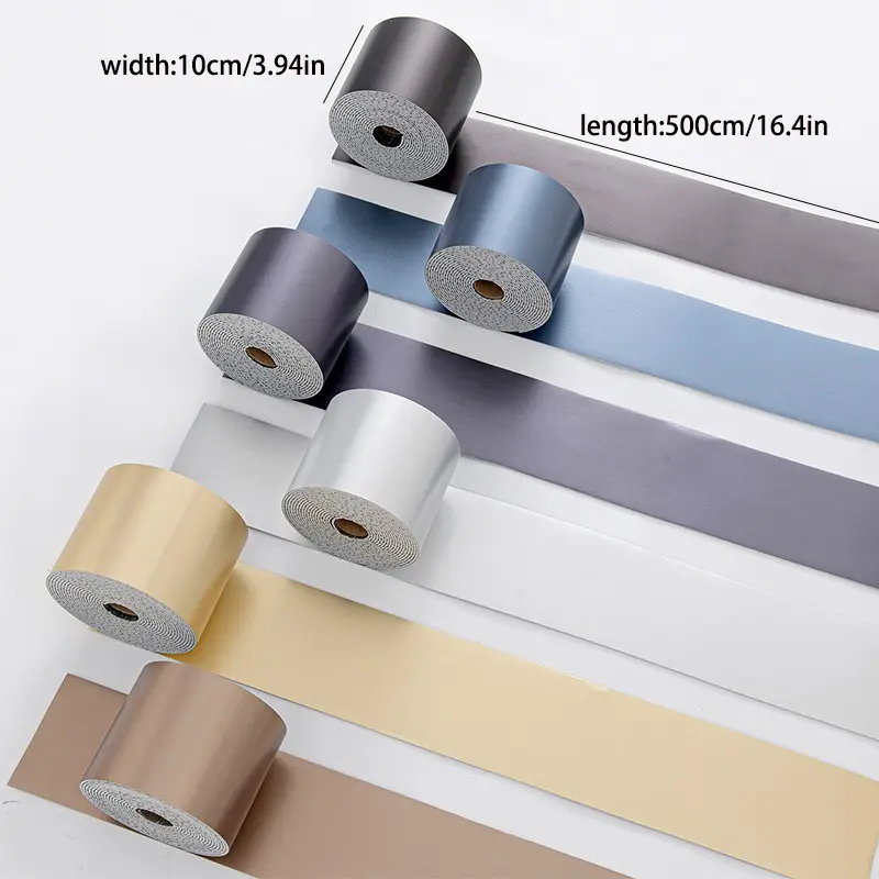 2 Rolls Self-Adhesive Baseboard Trim, Waterproof Moisture-Resistant No Drill Wall Corner Strip, Anti-Mold Floor Line Wallpaper for Kitchen Bathroom Living Room