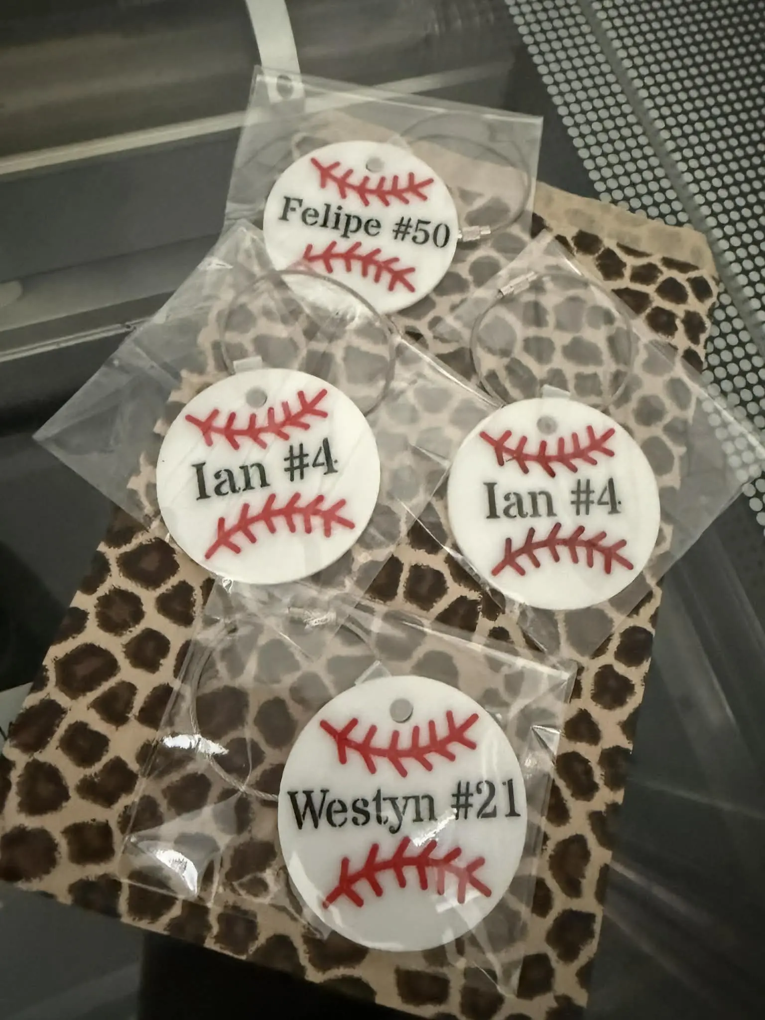 Add a personal touch to your gear with this custom 2in x 2in acrylic baseball tag, designed for players who take pride in their game. Crafted from durable, high-quality acrylic, this tag features a classic baseball design with bold red stitching and personalized details like name and number for a standout look.