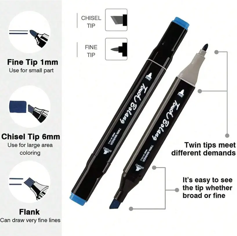 Discover the ultimate tool for adult coloring and illustrations! These markers come in 36-168 vibrant colors, perfect for any creative project. The dual-head design offers versatility, allowing you to switch between tips effortlessly. Ideal for professional and personal use, these markers ensure your sketches and illustrations stand out.