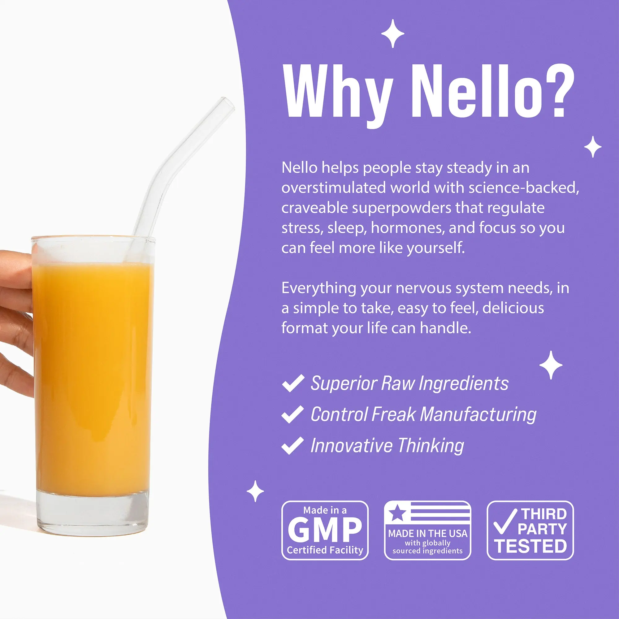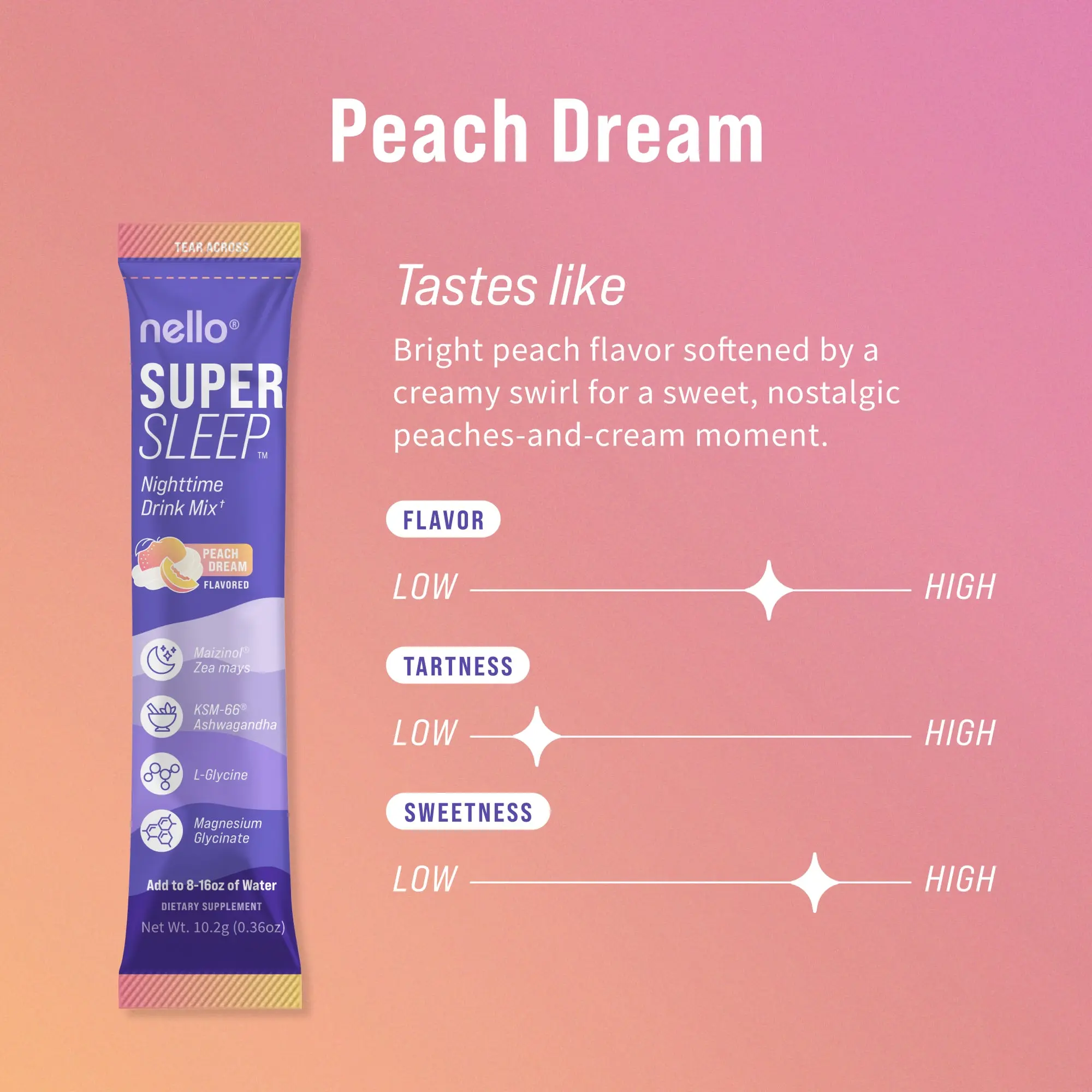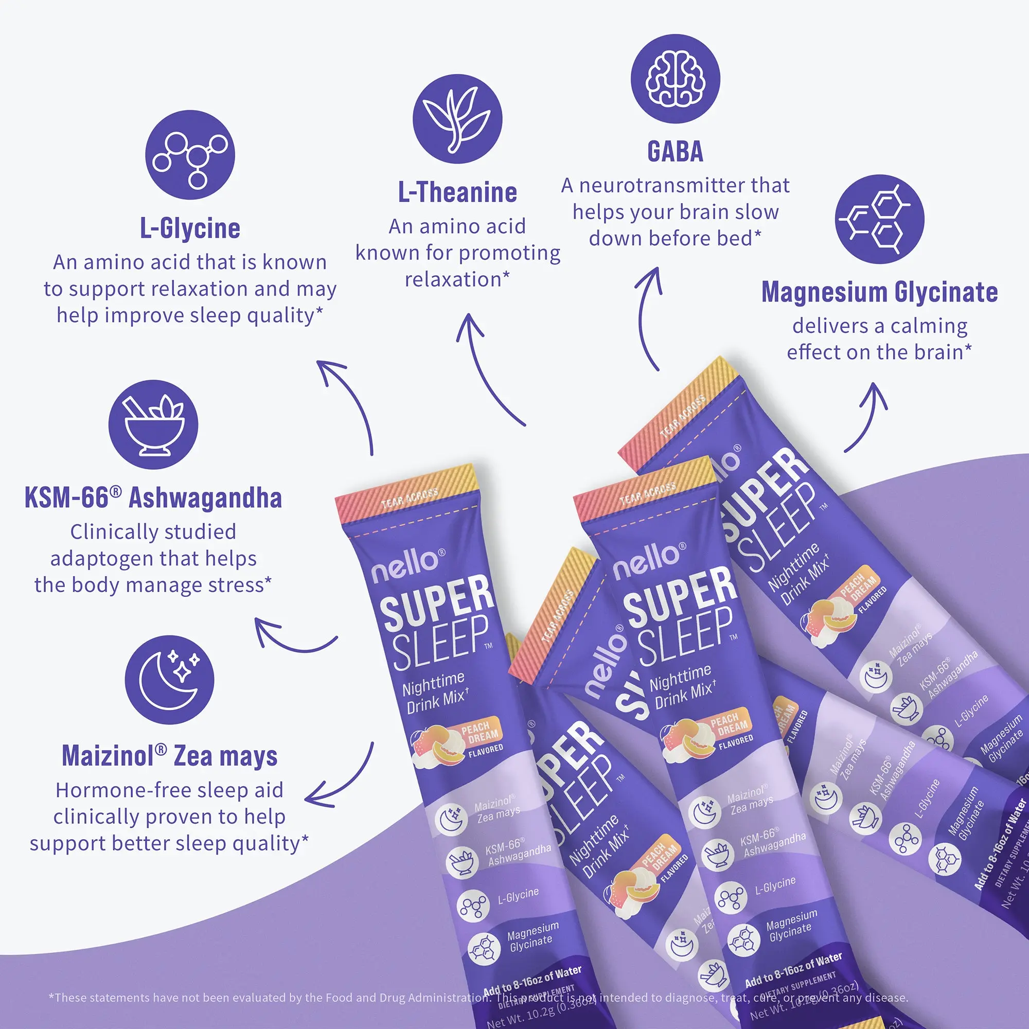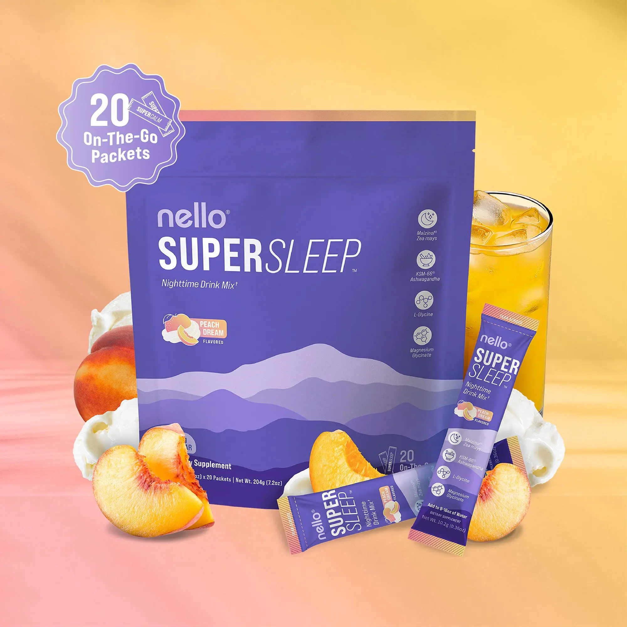 At Nello, we believe good health means feeling more like yourself. We created Supersleep with ingredients to help you unwind before bed, setay asleep through the night, and wake up feeling refreshed.*