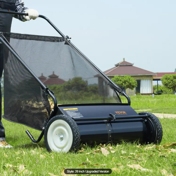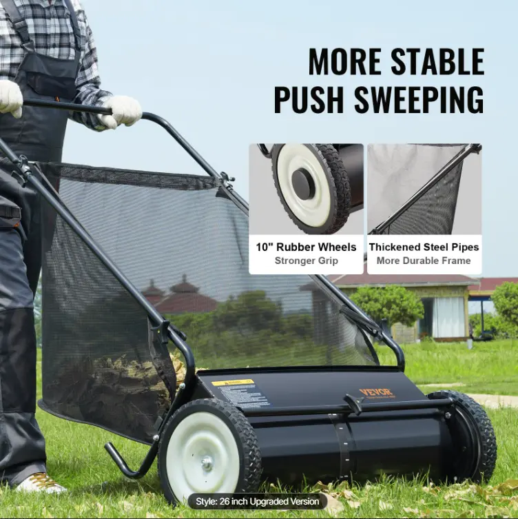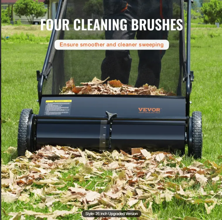 ·Effortless Cleaning: Just grab the ergonomic handle, push your yard leaf sweeper from behind, and watch the powerful spinning brushes scoop up everything in their path! It quickly picks up leaves, small twigs, grass clippings, and other dry debris, cleaning your entire lawn with fantastic speed.
