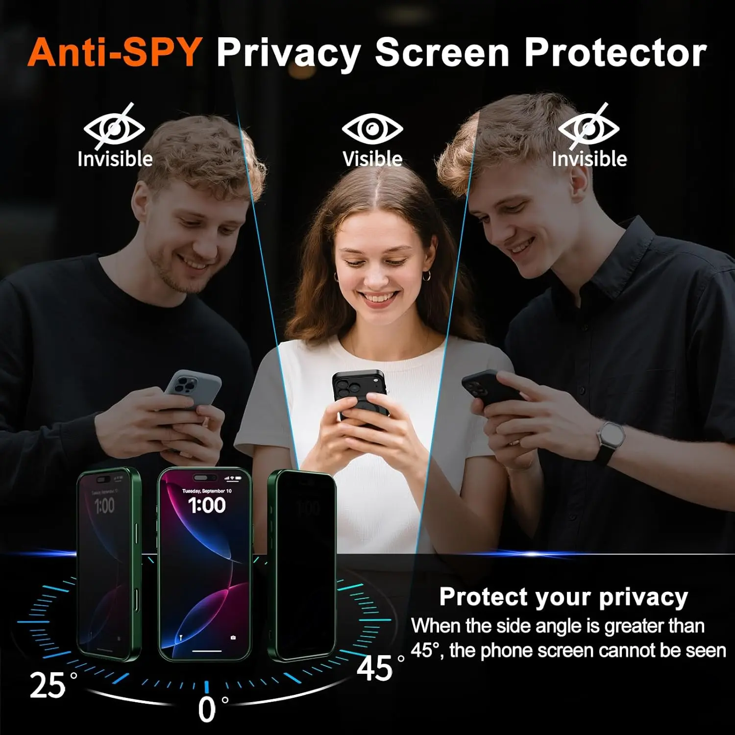 ·[Anti-Spy Screen] Privacy case for iPhone 17 protect privacy and screen, when facing screen at 90°, screen content is clearly visible, when facing above 45°, screen content not visible, It can effectively protect your privacy when you open your phone in a crowd.