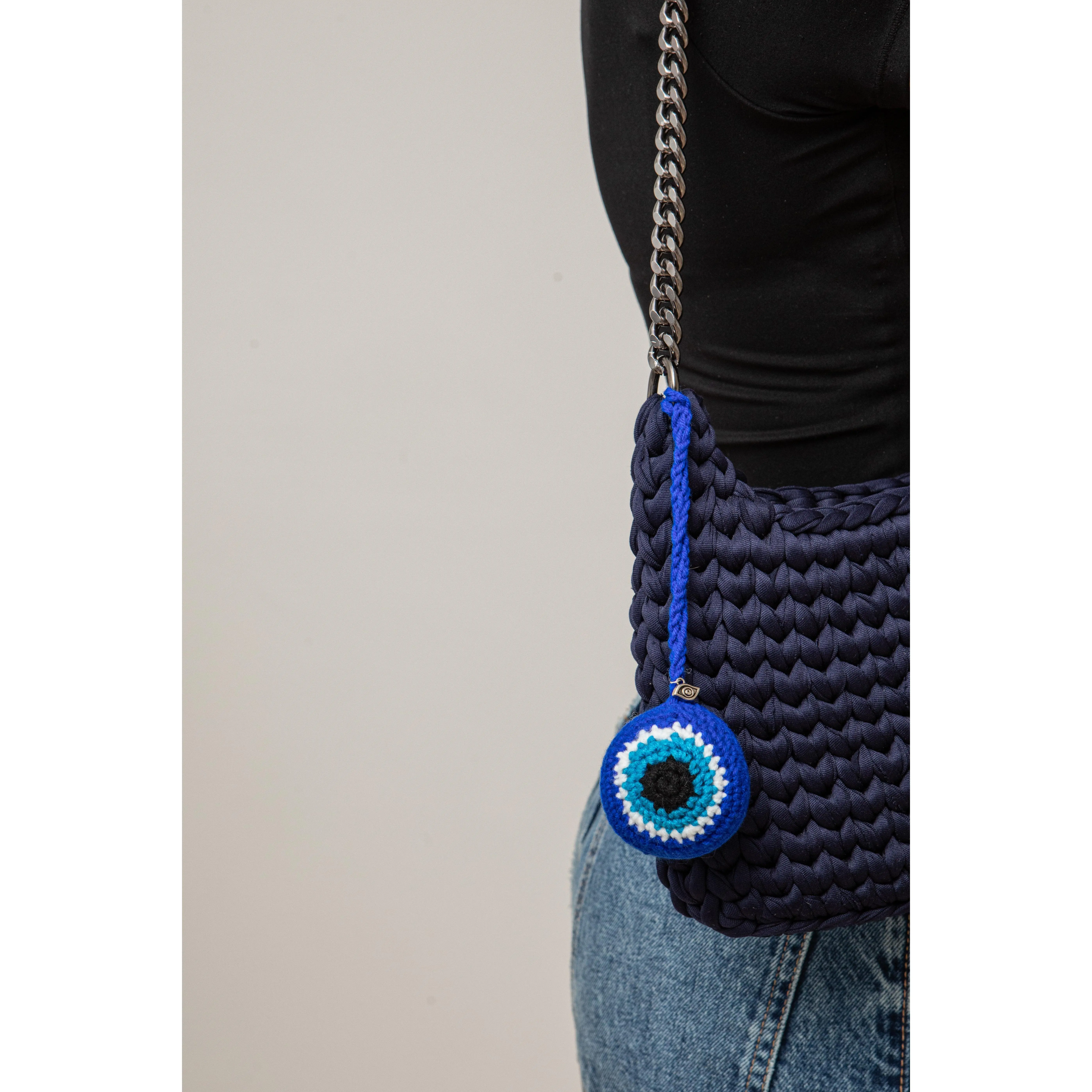 Evil Eye knitted yarn pendant