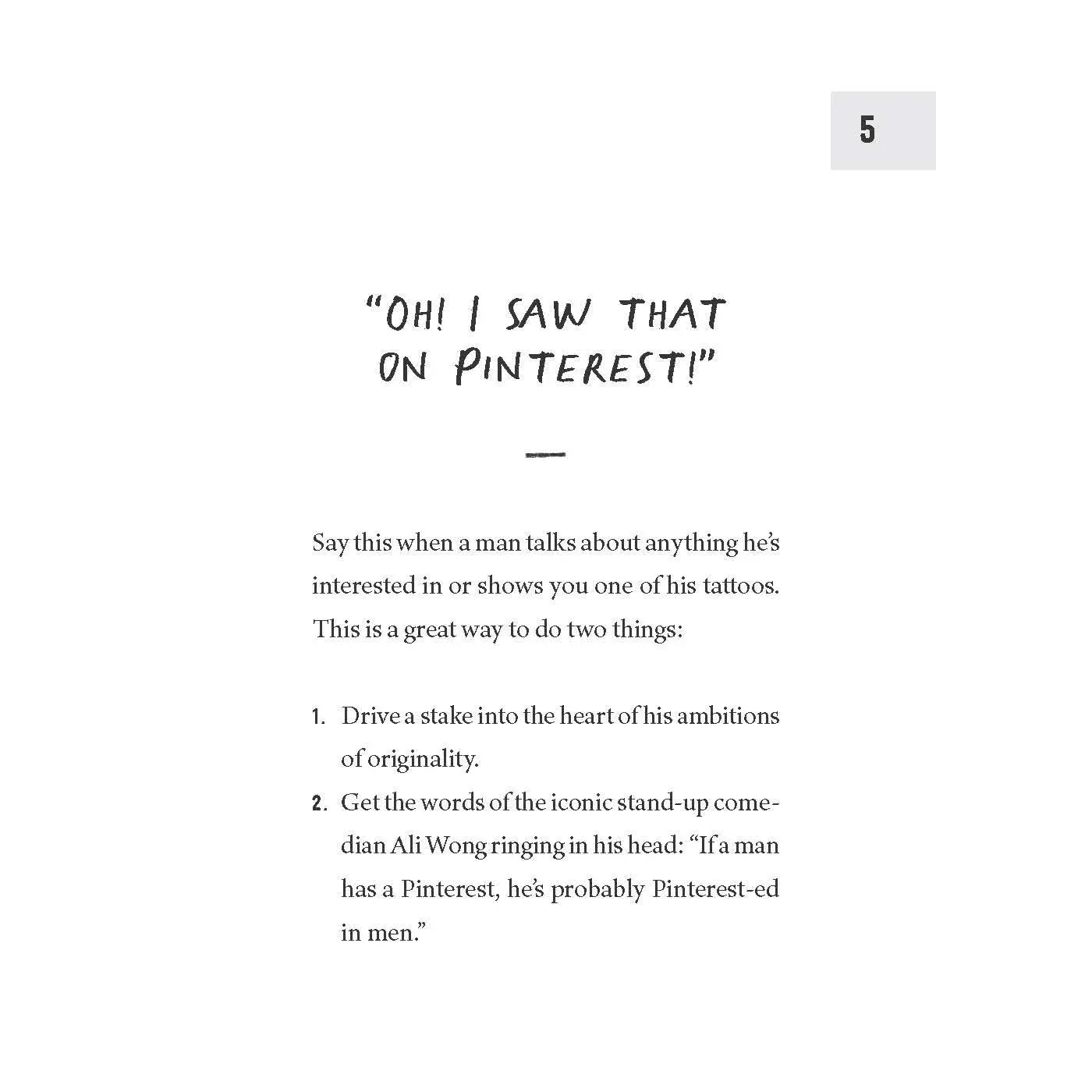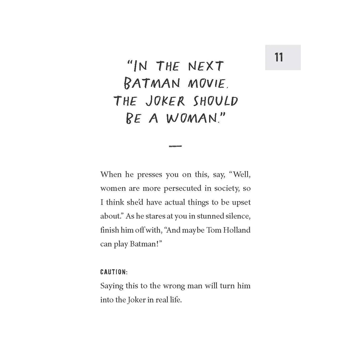 With more than 100 phrases, questions, and comebacks, How to Piss Off Men is your essential guide to sending even the most relentless mansplainer into an existential crisis. Whether it's referring to his expensive NFL jersey as "cosplay" or letting him know he has the confidence of a much taller man, this handbook will ensure you're equipped to combat toxic masculinity in any situation.*