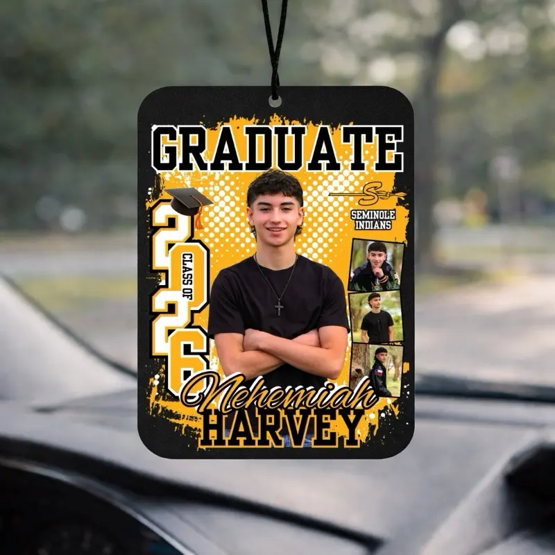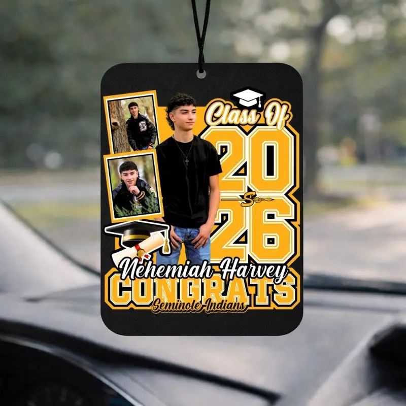 Graduation Car Hangers - Personalized 2026 with School Theme and Photos - Car decor - Car Ornament
