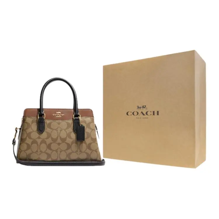 Materials: Outer: Durable coated canvas with COACH’s signature monogram pattern. Trim & handles: Premium full-grain cowhide leather—soft, resilient, and develops a rich patina over time. Lining: Sateen fabric with COACH branding.