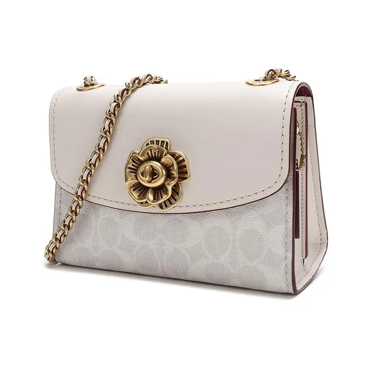 COACH Parker 18 Camellia Chain Crossbody Bag (Small, Women's, Pink-White)