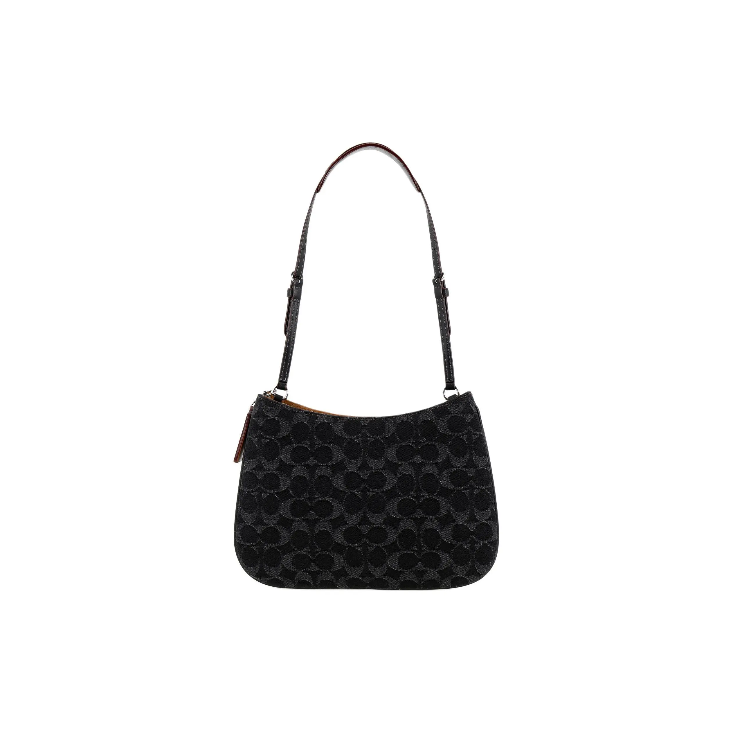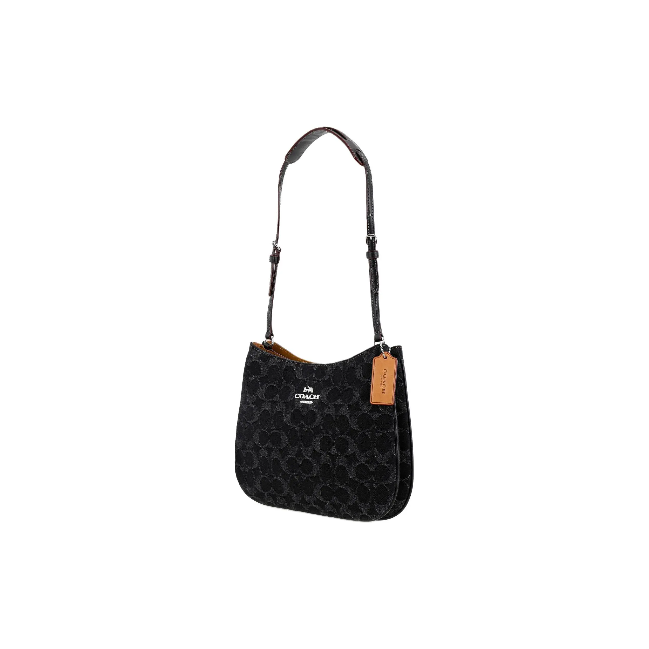 Materials: Mid-weight cotton denim (100% cotton) with full-grain leather accents (cowhide), nickel-free silver-tone metal hardware, and durable polyester lining with COACH’s signature jacquard fabric.