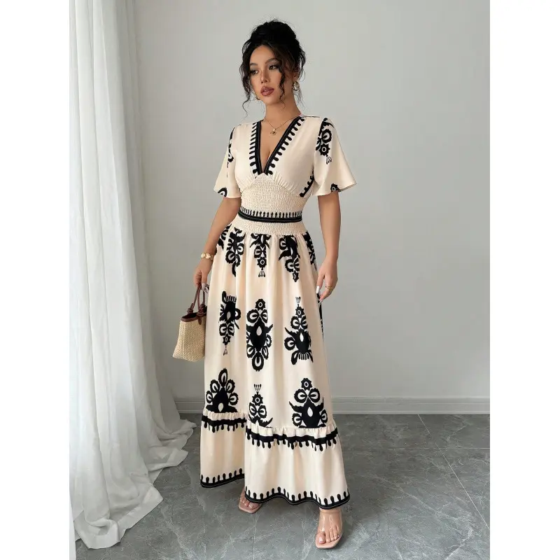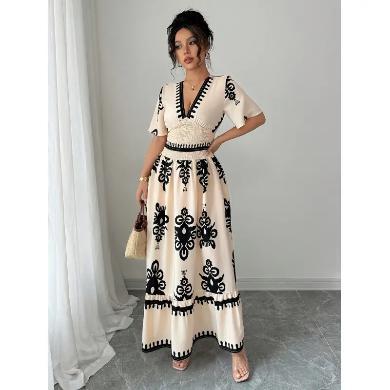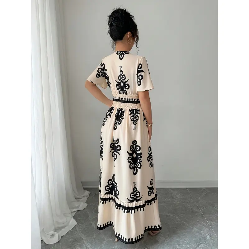 Step into summer elegance with our Retro V-neck Print Dress — a perfect blend of chic urban style and timeless sophistication. Featuring a flattering high-waist empire design, A-line skirt, and delicate floral digital prints, this dress is made to turn heads.