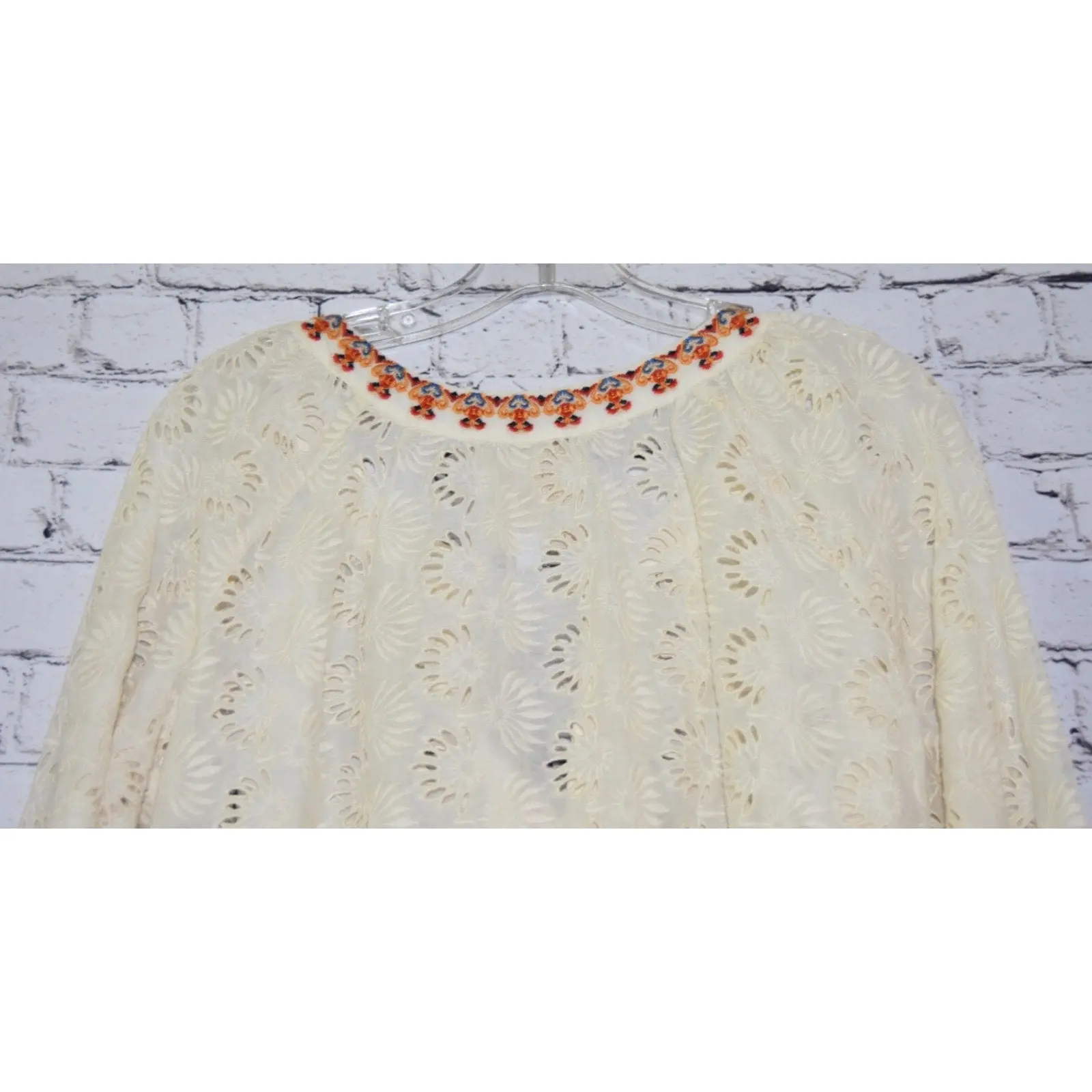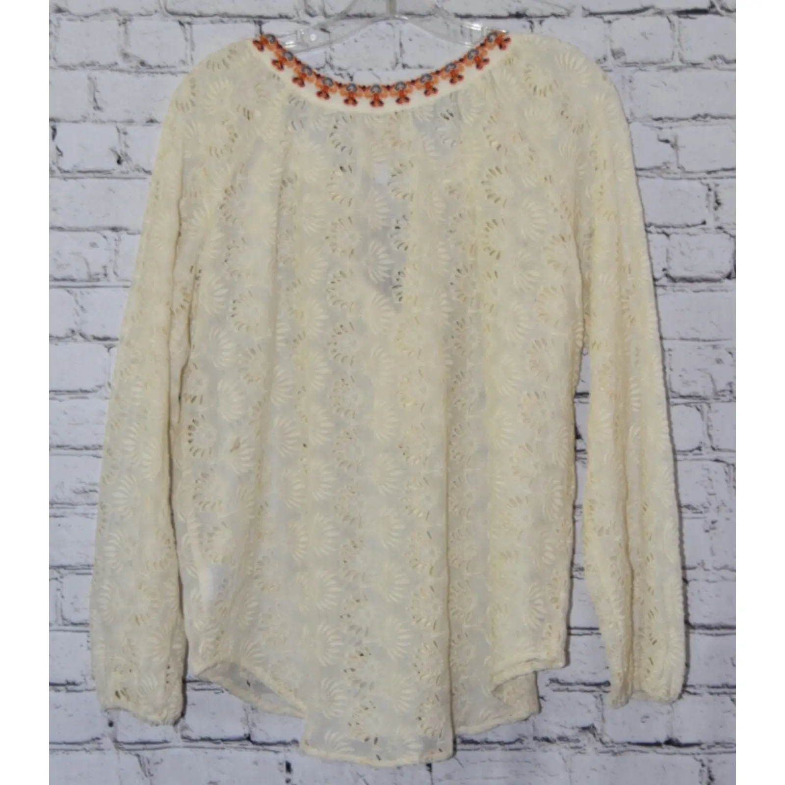 Johnny Was JADE Eyelet Women's Embroidered Floral Boho Beaded Blouse NWOT