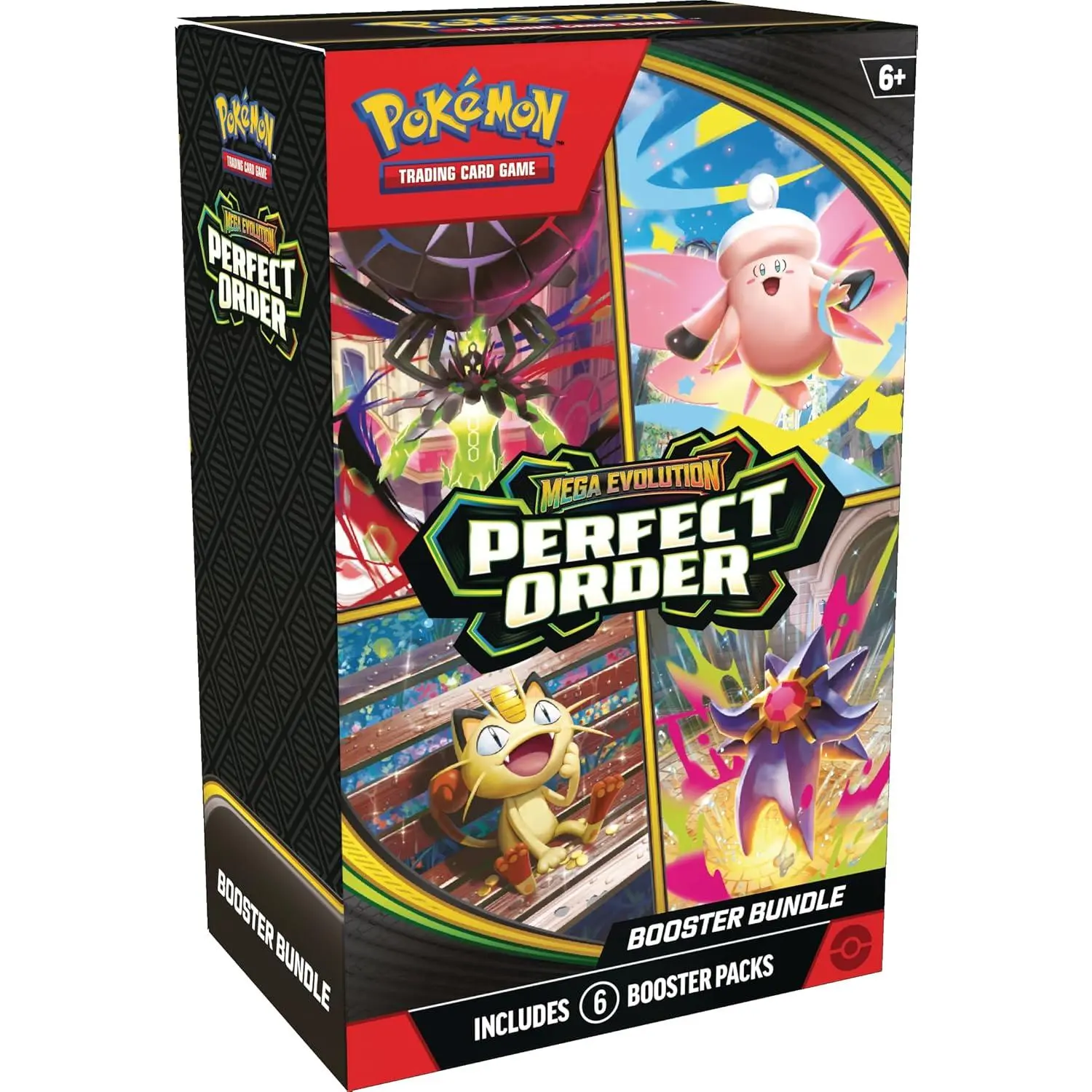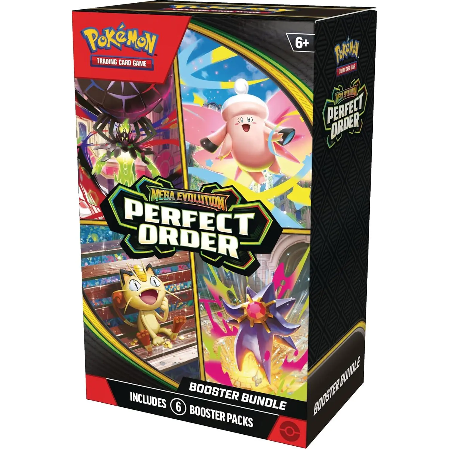 ·6 Packs of New Cards: Dive into the Pokémon TCG: Mega Evolution—Perfect Order Booster Bundle. It includes 6 booster packs from the new Perfect Order expansion. Perfect for starting your collection of over 120 cards.